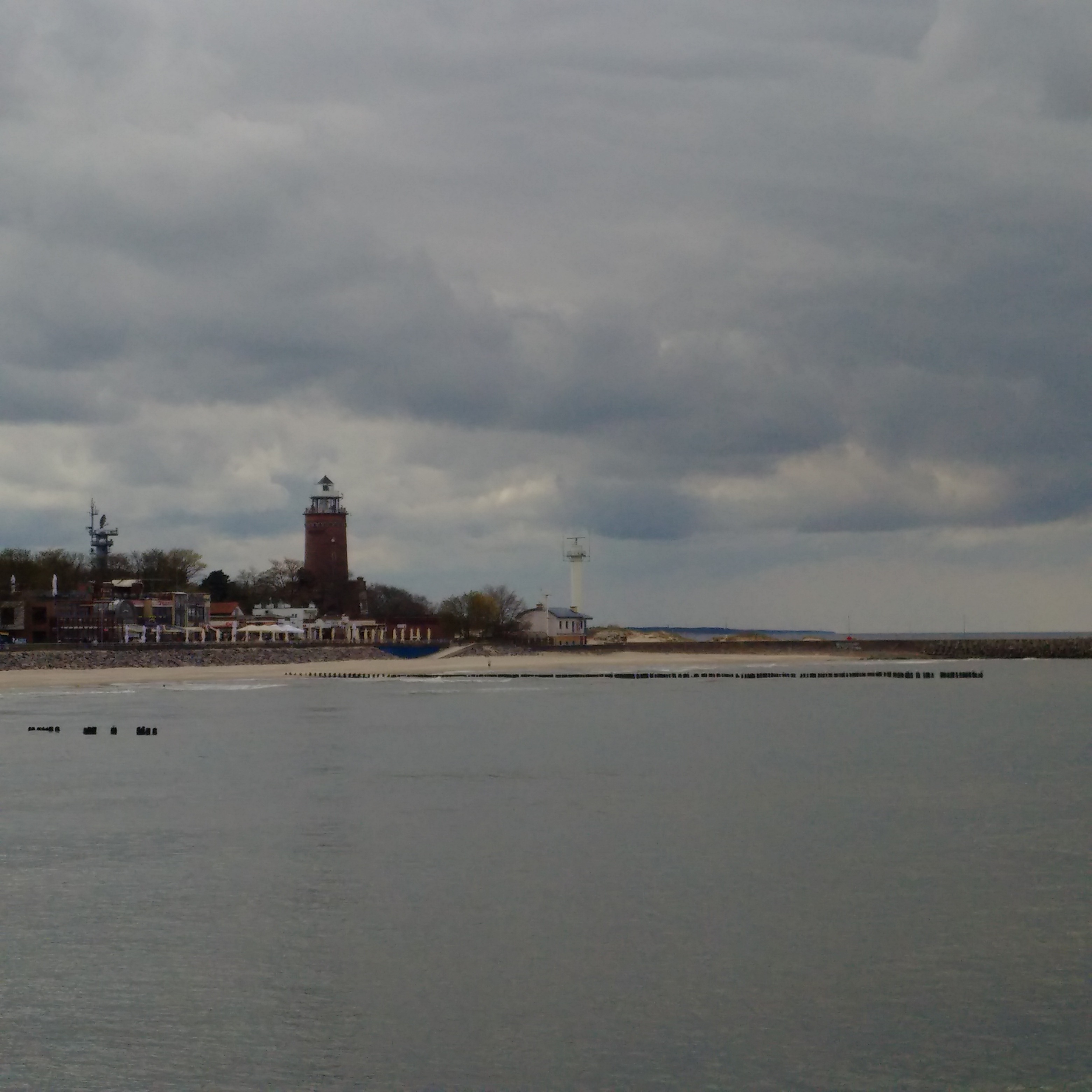Unten am Leutturm sah ich ein bemerkenswertes Schild mit Hinweisen zu meiner Route. Cool, immerhin knapp 150 km hinter der Grenze und gut 400 km vor der nächsten, der russischen Grenze (Braniewo). Oh, da denke ich jetzt mal noch nicht dran, ist auch weiter, denn ich laufe ja an der Küste. Der Knaller ist, daß sie da auch Brest in der Bretagne dran geschrieben haben! Wahrscheinlich weil ich jede freie Minute in die Kommissar Dupin- Krimis stecke. Die spielen ja dort. So muß es sein.