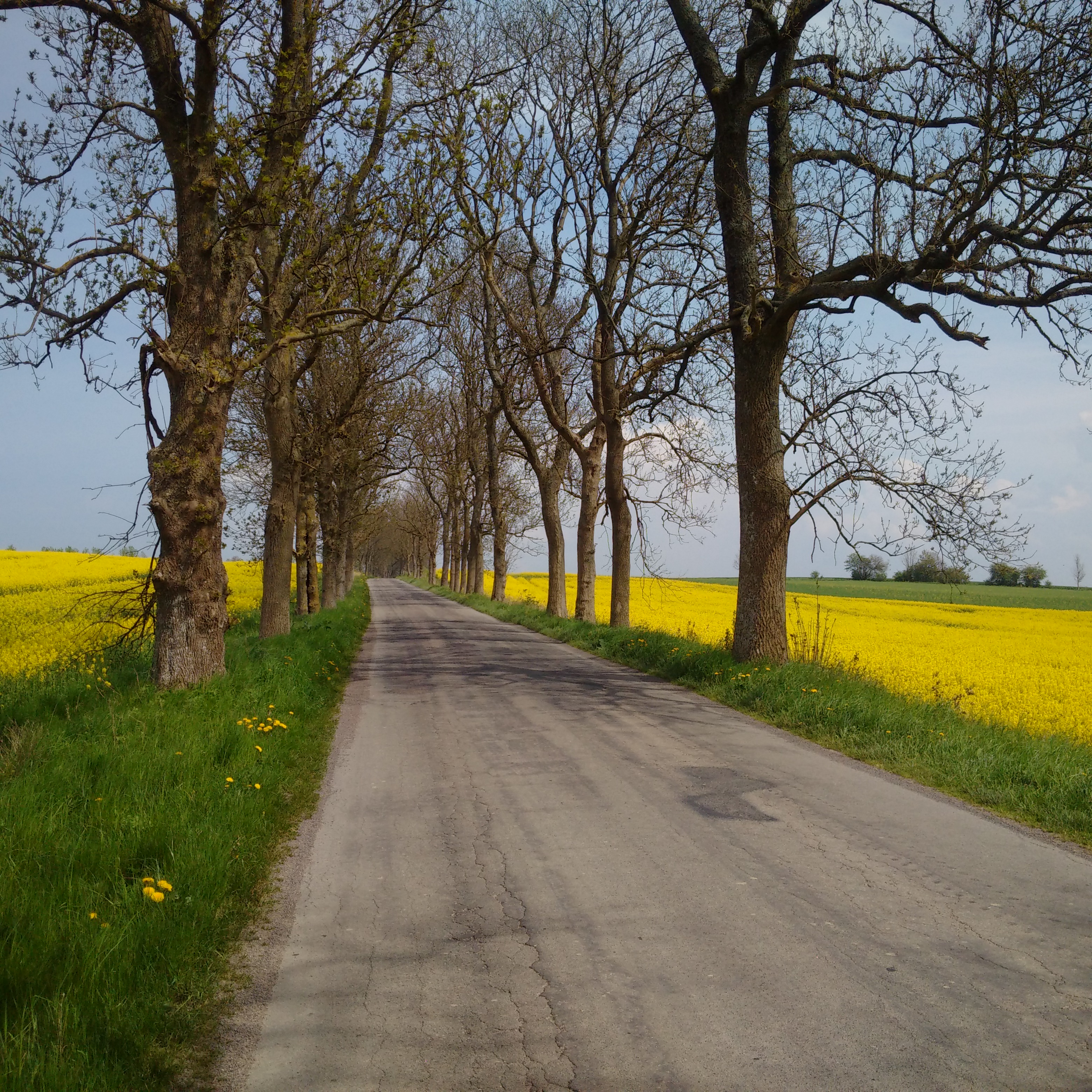 Gut, daß ich die Strecke Darlowo – Ustka geteilt habe. So waren es zwar nicht 40km Landstraße sondern 50, aber diese Route eben auf zwei Tage verteilt war abgelegener und schöner mit weniger Autoverkehr. Der Grund war wieder Militär, diesmal inkl. Strand, deshalb der Umweg. Und es wurde fleißig mit Kanonen o.ä. geschossen, ich hoffe, immer schön aufs Meer hinaus. Meine Route führte teils einer alten Alee durch hochblÜhende Rapsfelder. Das war schon eine Pracht! Ich hab heute wieder die Sony ausgepackt für einen kurzen Film, sieht aus wie ne Radarfalle.