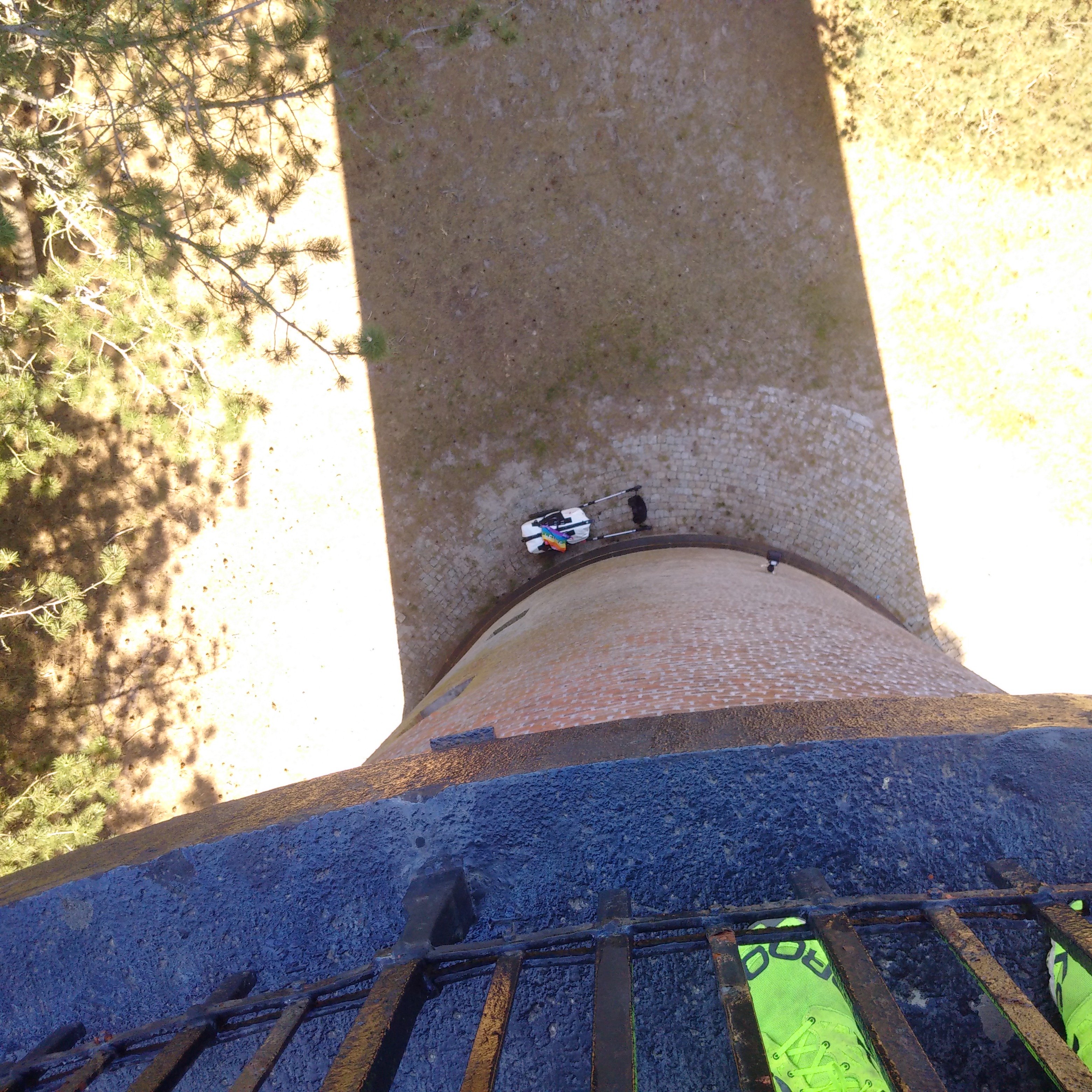 In Czolpino wollte ich unbedingt auf den Leuchtturm, Nr. 9. Er hat einen super Platz nicht am Meer – da lag er vielleicht früher mal – auf einem bestimmt 30 m hohen Berg aus Sand. Ich mußte ein paar mal pausieren, bis ich mit dem Wagen oben, am Fuß des Leuchtturms war. Es hat sich gelohnt, er ist sehr schön!