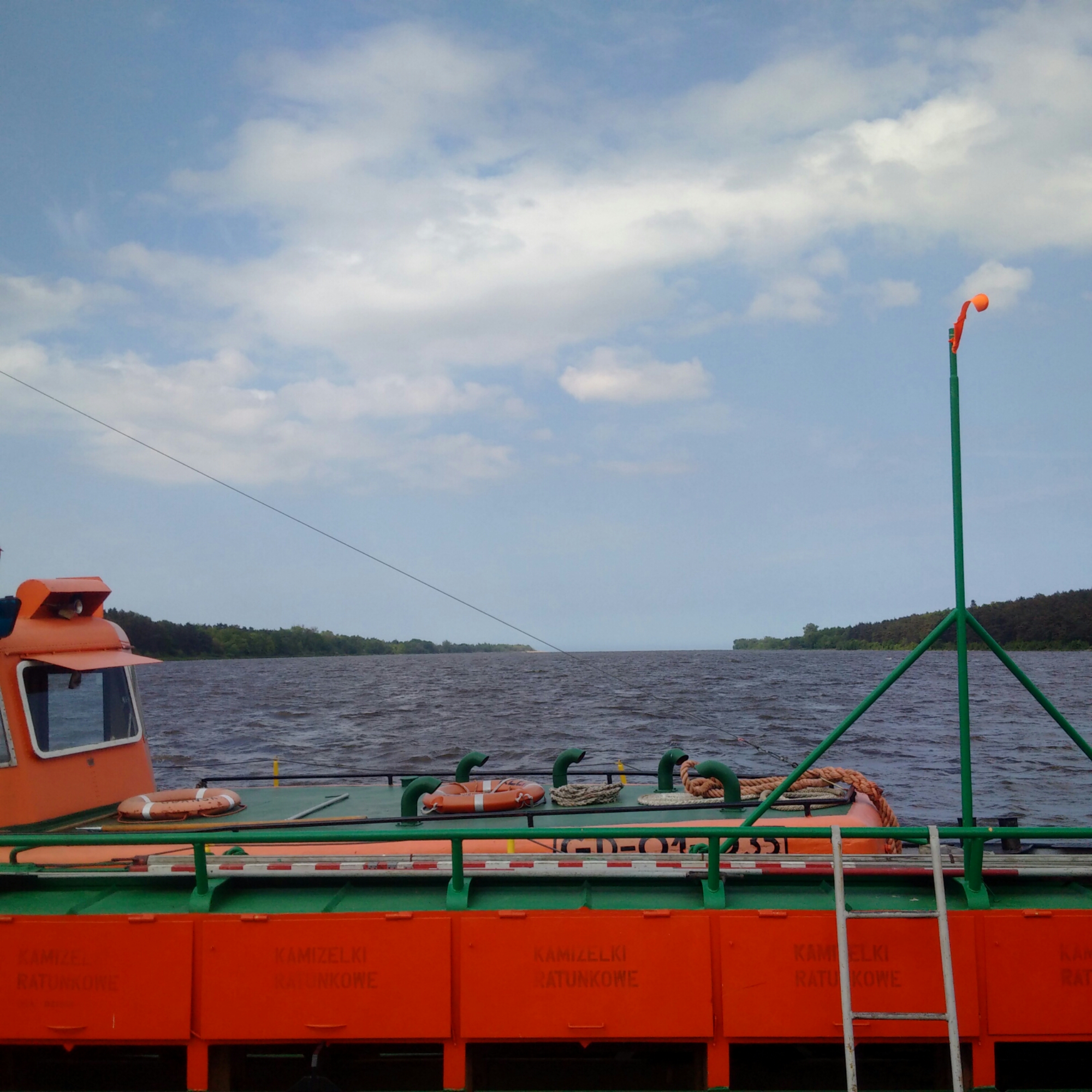 Es war auch ein super neuer Tunnel für Radfahrer unter einem Autobahnkreuz hindurch dabei, zahlreiche Metallbetriebe, Raffinerien und Hafenanlagen samt ihrer eigenen Eisenbahnen. Noch lange habe ich das Fauchen, Stampfen und Klopfen der Industrie gehört. Dann kam ich an eine provisorische Schwimmbrücke über einen Zweigfluß der Wisla = Weichsel und danach war wieder mehr Stille.