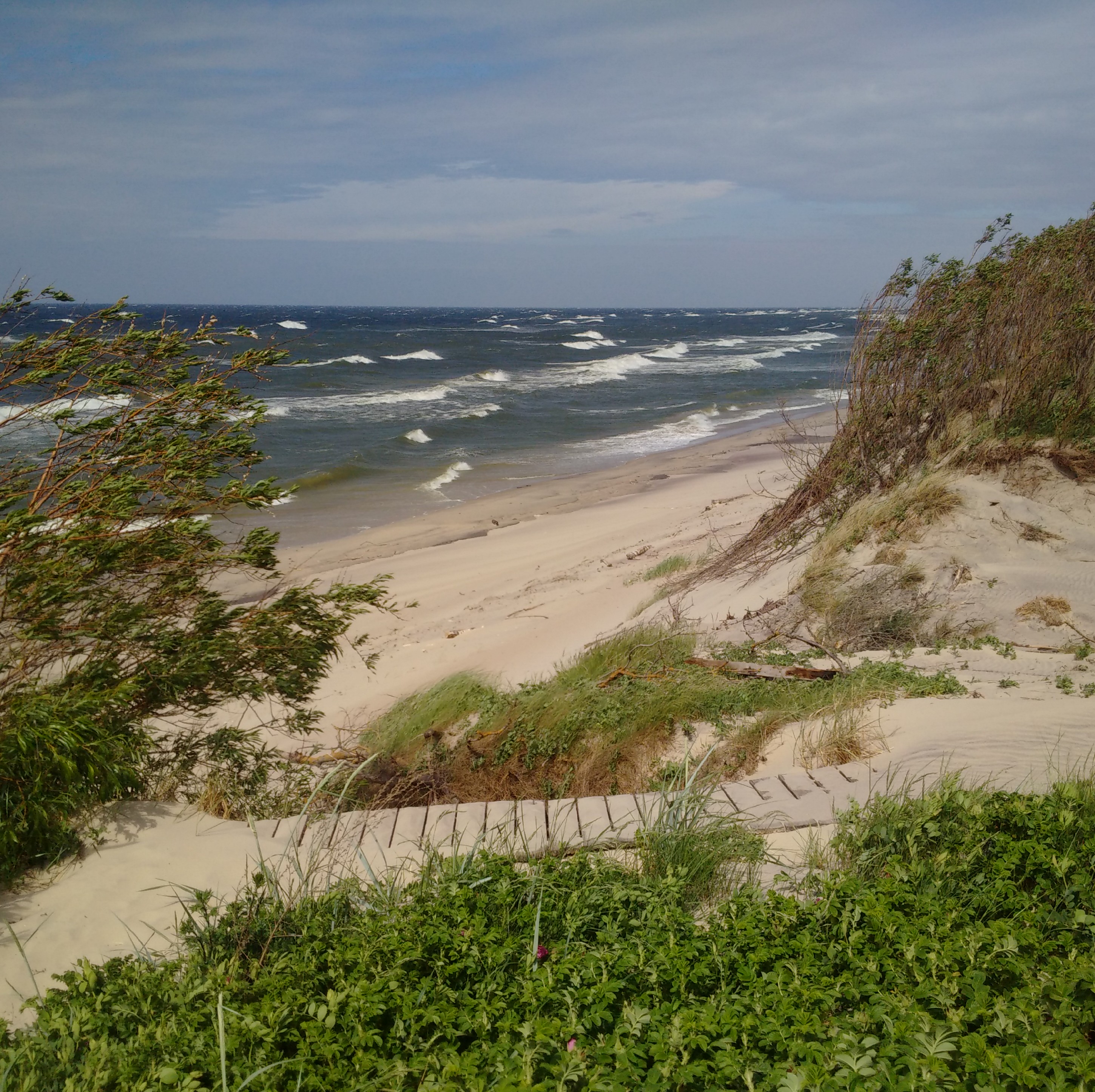 Heute hielt ich wieder bei einem Leuchtturm an, in Lesna (Sarkau), nach dem Fake-Turm in Kaliningrad der zweite im russischen Teil. Aber auch der nicht besonders toll, nur ein Metallturm mit Holzverkleidung – so geht’s auch, muß nicht immer so schick historisch sein. Zwischendurch bin ich dann auch einmal in die Sanddünen vorgestoßen. Bei dem starken Wind heute war das wie in der Mitte eines Sandstrahlgebläses!