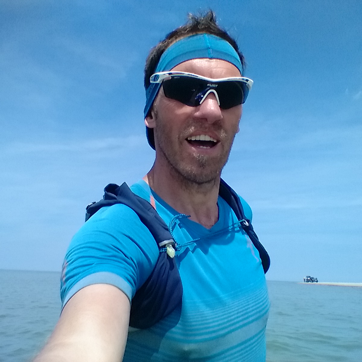 Ich hatte ja nicht geduscht und das Wasser erschien mir heute sehr angenehm (die Luft war auch warm), da bin ich mehrmals bis zur Mitte im Wasser gewesen. Die Laufpants sind ohnehin naß und salzig, da spielt das keine Rolle. Ich habe Sandalen angehabt als Kompromiß zwischen barfußlaufen (Erholung für die Füße) und Blasen- / Hornhautschutz. Das war auch für das Wassertreten ideal!