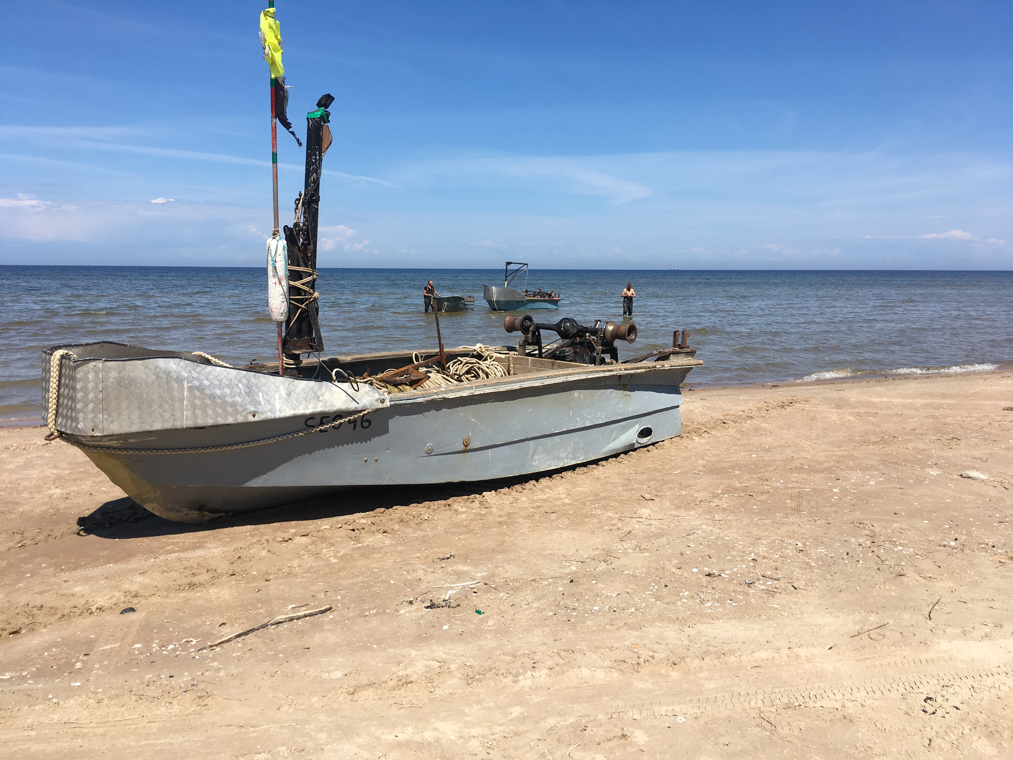 Seit Pavilosta hab ich keinen Fischereihafen mehr gesehen, und irgendwie fangen sie hier auch weniger Fisch. Es gibt auch keinen Ostseefisch zu essen, schon seit Russland nicht mehr! Na jedenfalls haben diese Fischer hier wohl auch nur ein sehr bescheidenes Geschäft am laufen und plagen sich dafür Tag für Tag.