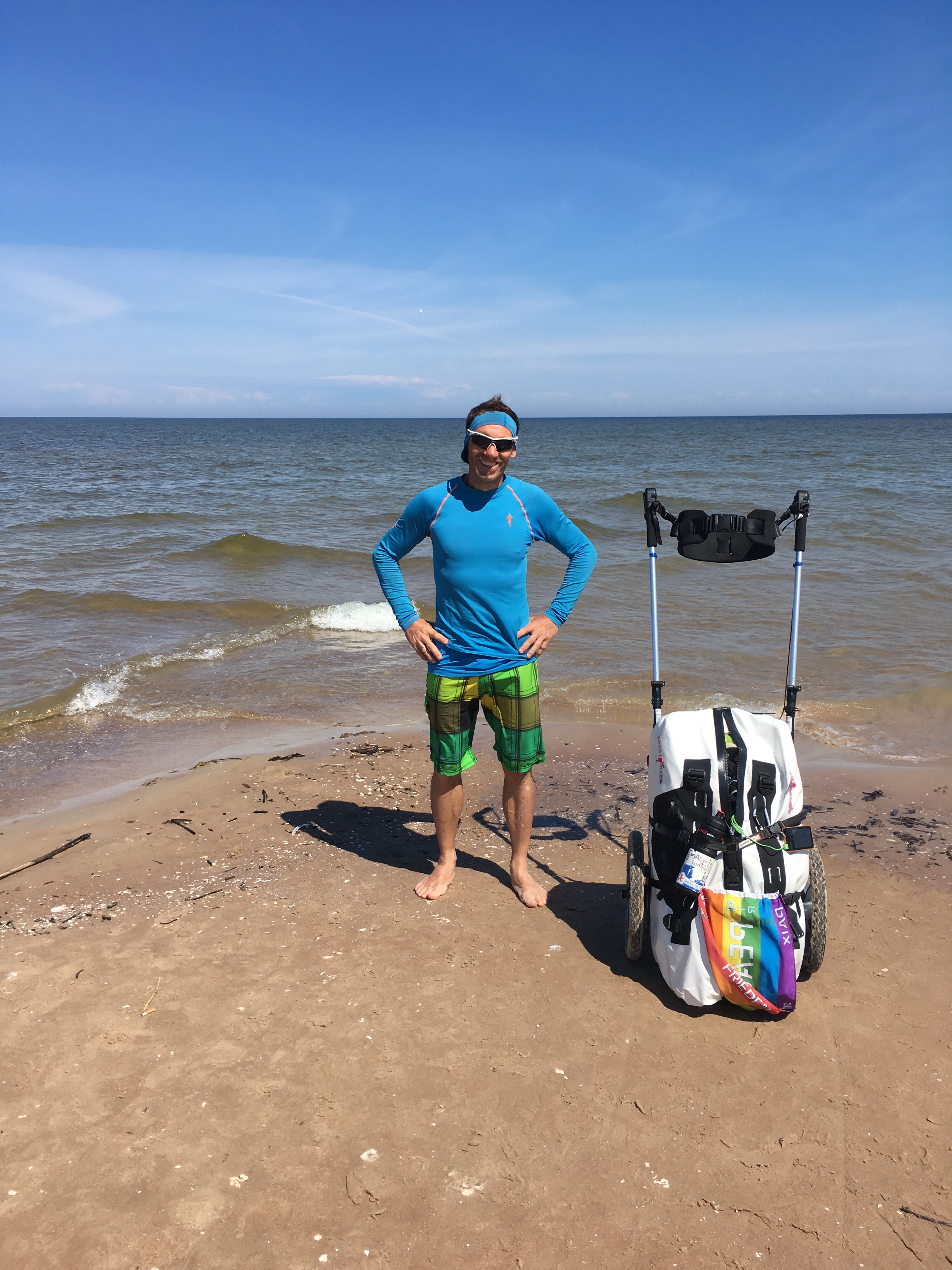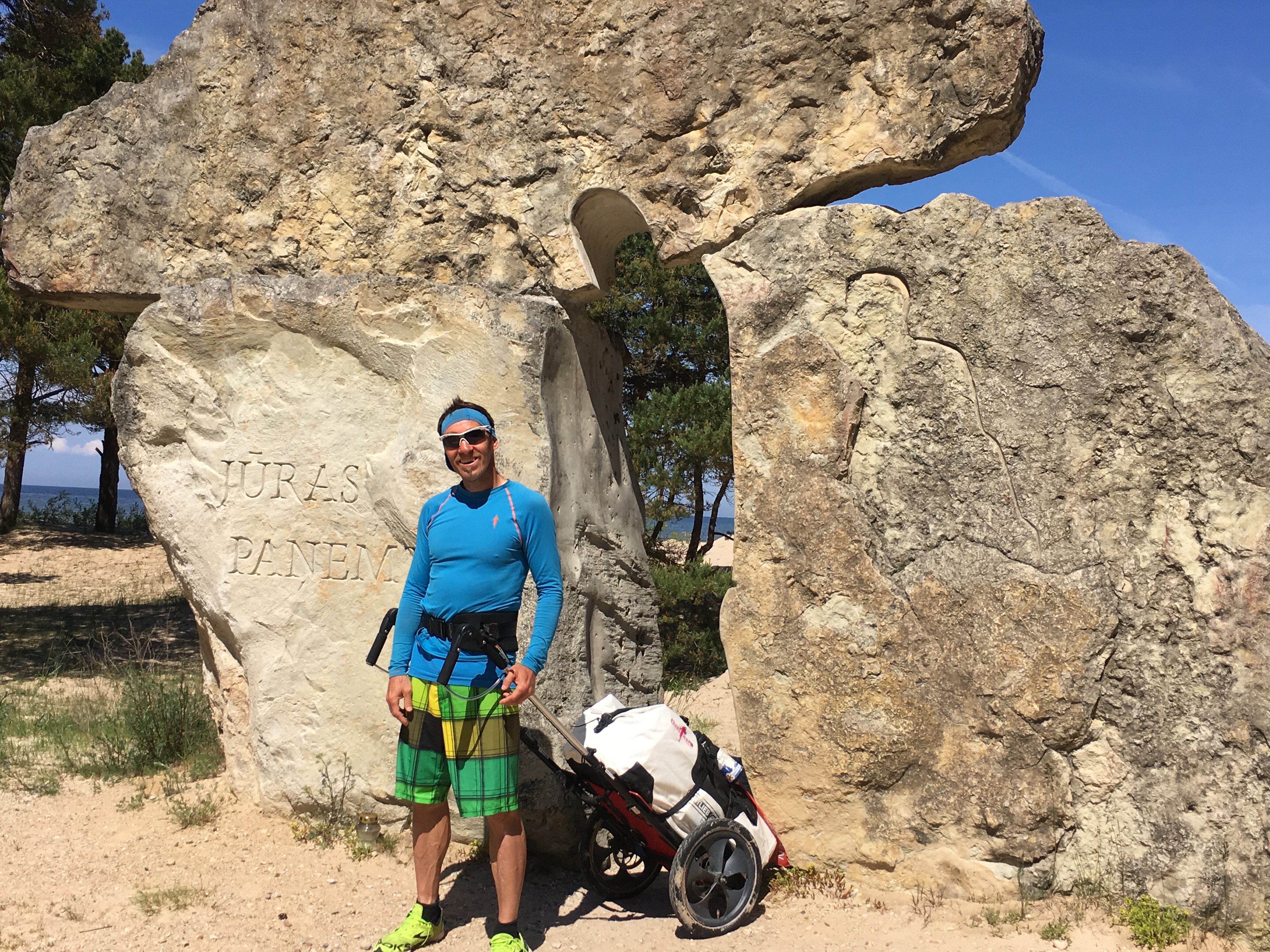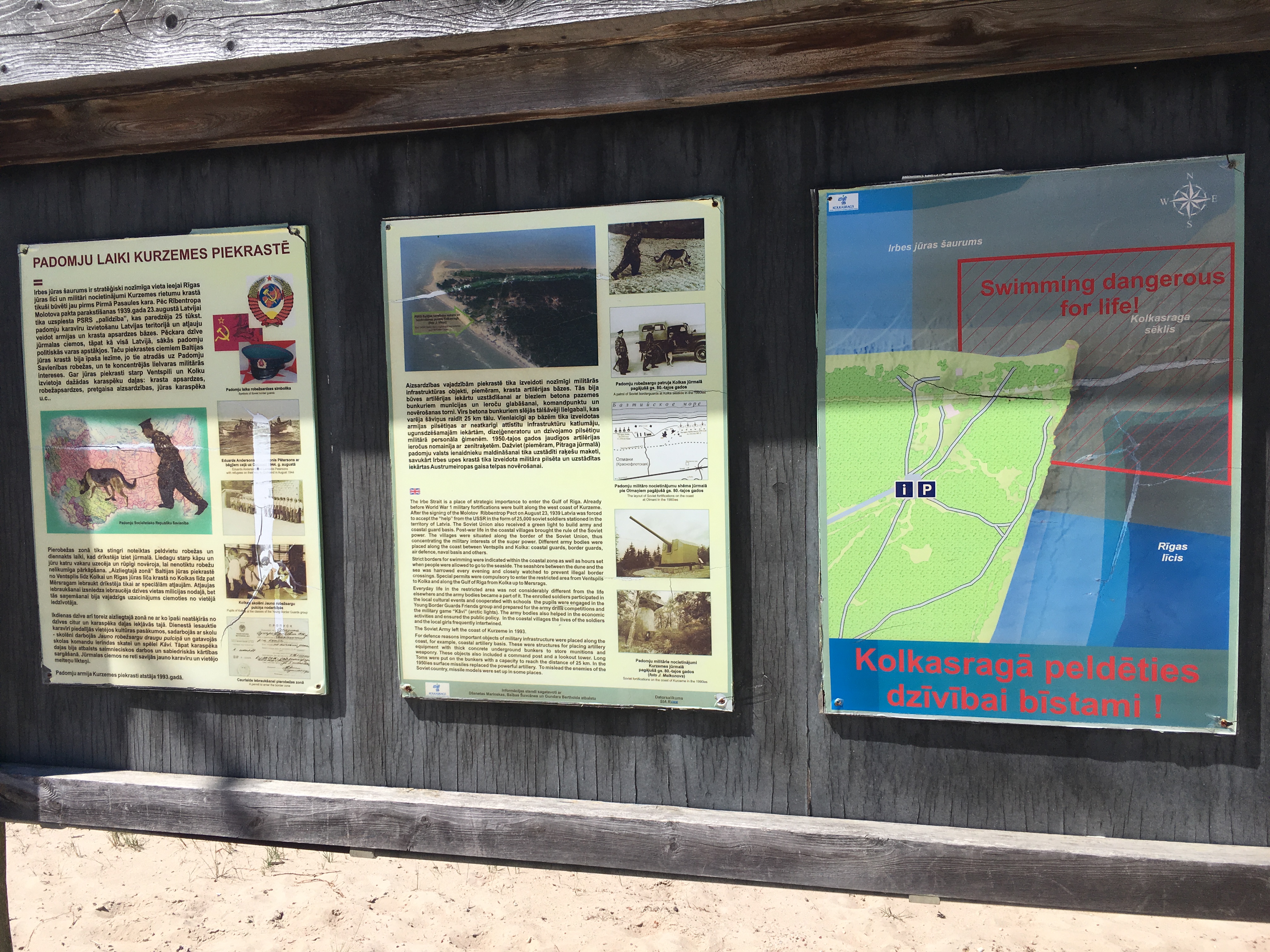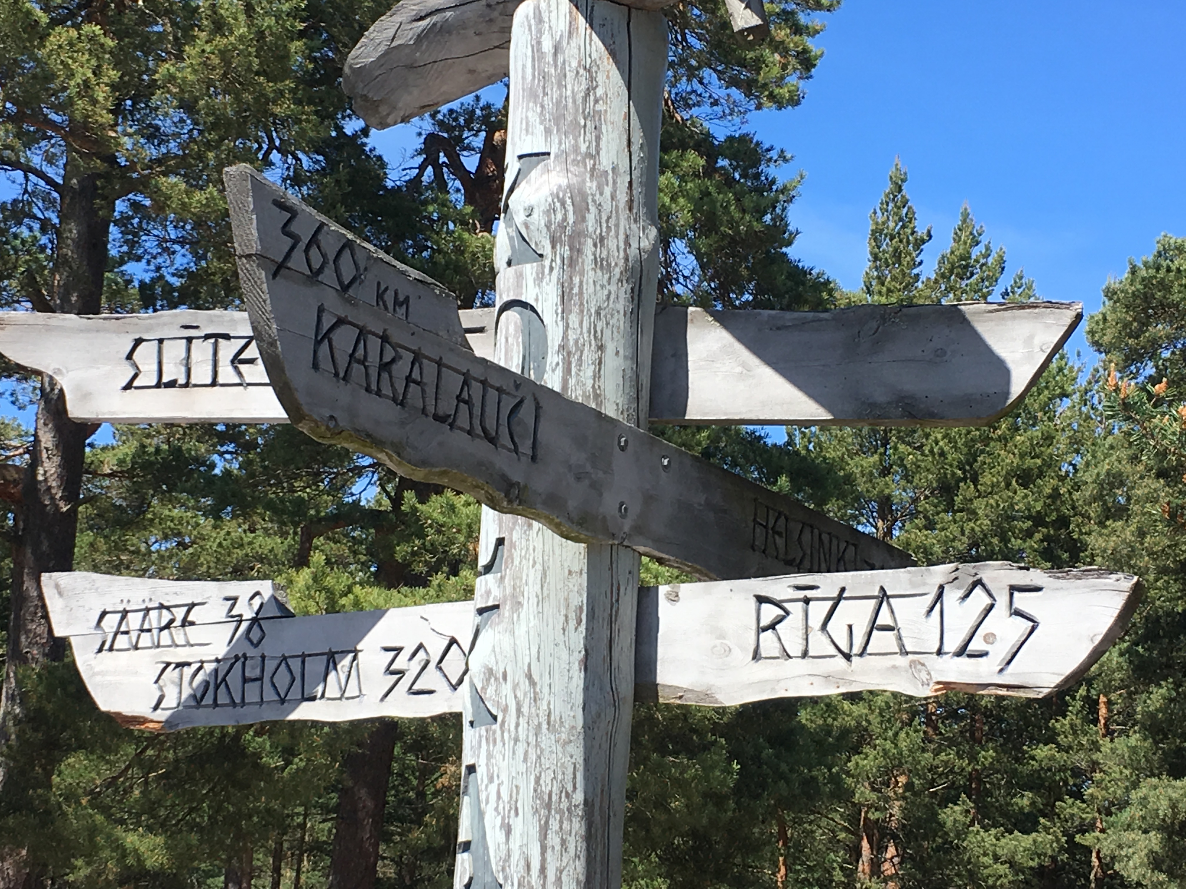 Und dann habe ich Kap Kolka erreicht! Diese exponierte Landspitze ist noch auf der Weltkarte zu erkennen. Sie teilt die Rigaer Bucht von der offenen Ostsee. Die Strömungen sind sehr stark und deshalb wäre schwimmen hier lebensgefährlich. Ich bin sehr glücklich, hier zu sein. Ich lasse mich fotografieren direkt an der Spitze und vor dem Denkmal für die „auf See gebliebenen“.