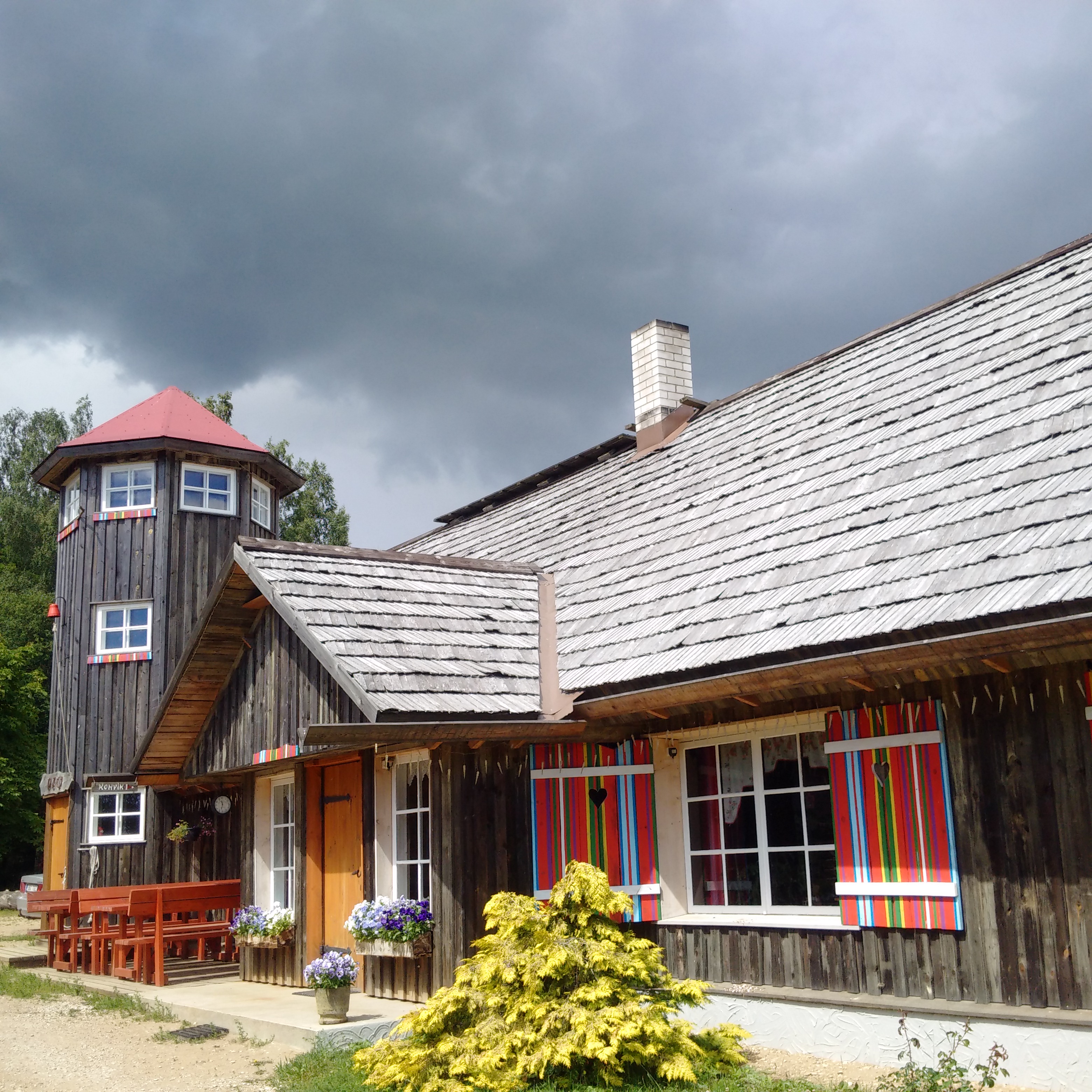 Dann kommt das Anwesen Maria Talu, angeblich die estnische Niederlassung von Santa Claus. Hier gibt’s ein Café, einen Pferdehof, eine Boutique und ähnliches. Im Moment noch weitgehend geschlossen, im September geht das Programm weiter. Ich denke mal, der macht jetzt eben auch mal Urlaub.