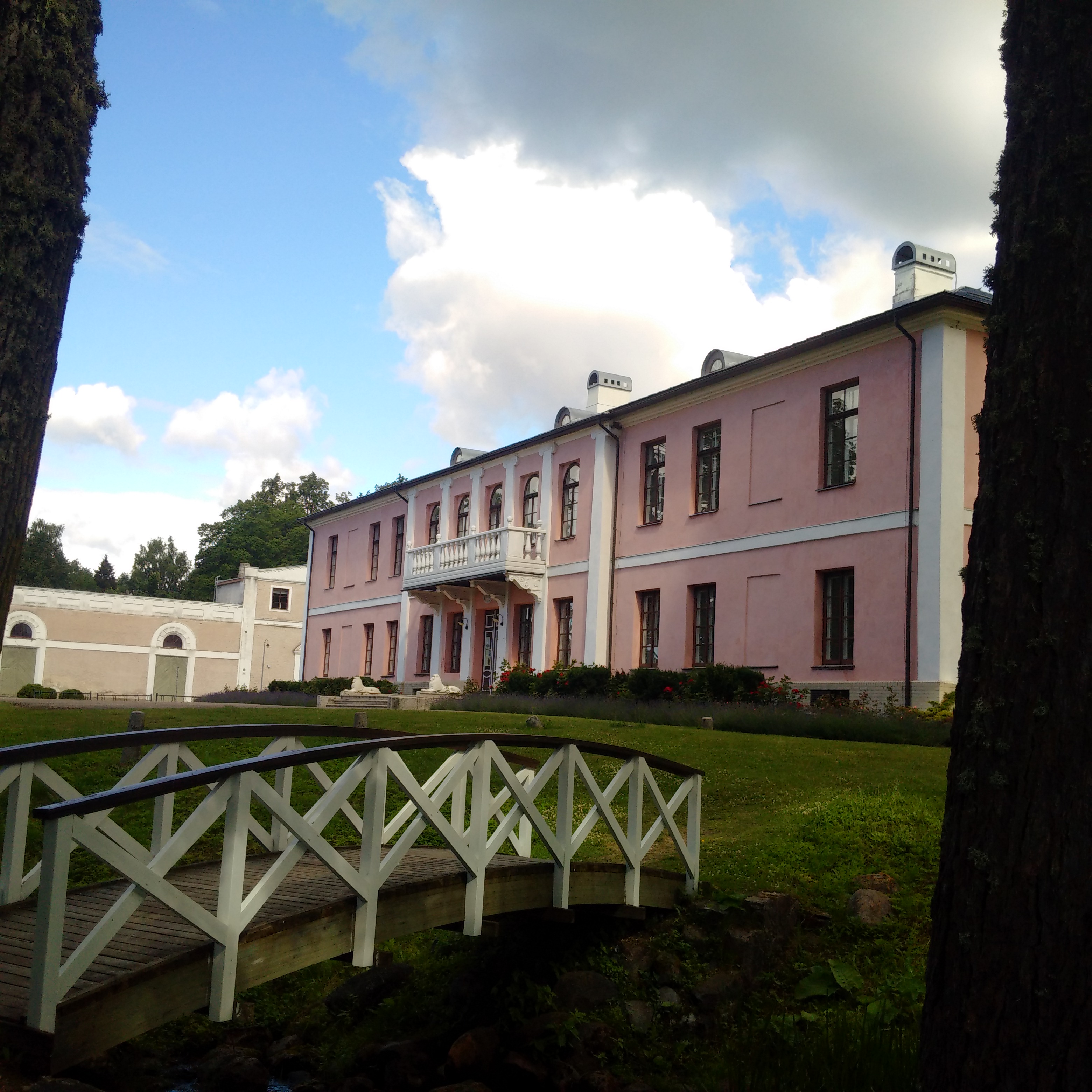 Das Anwesen Töstamaa Mois ist ein kultureller Hotspot: Jetzt im August werden im Schloßhof und im Park jeweils Sommertheater aufgeführt. Die Artisten und Mitarbeiter wohnen auch hier. Im Moment wird die Bühne gebaut und auch schon geprobt. Eine schöne kreative Atmosphäre.