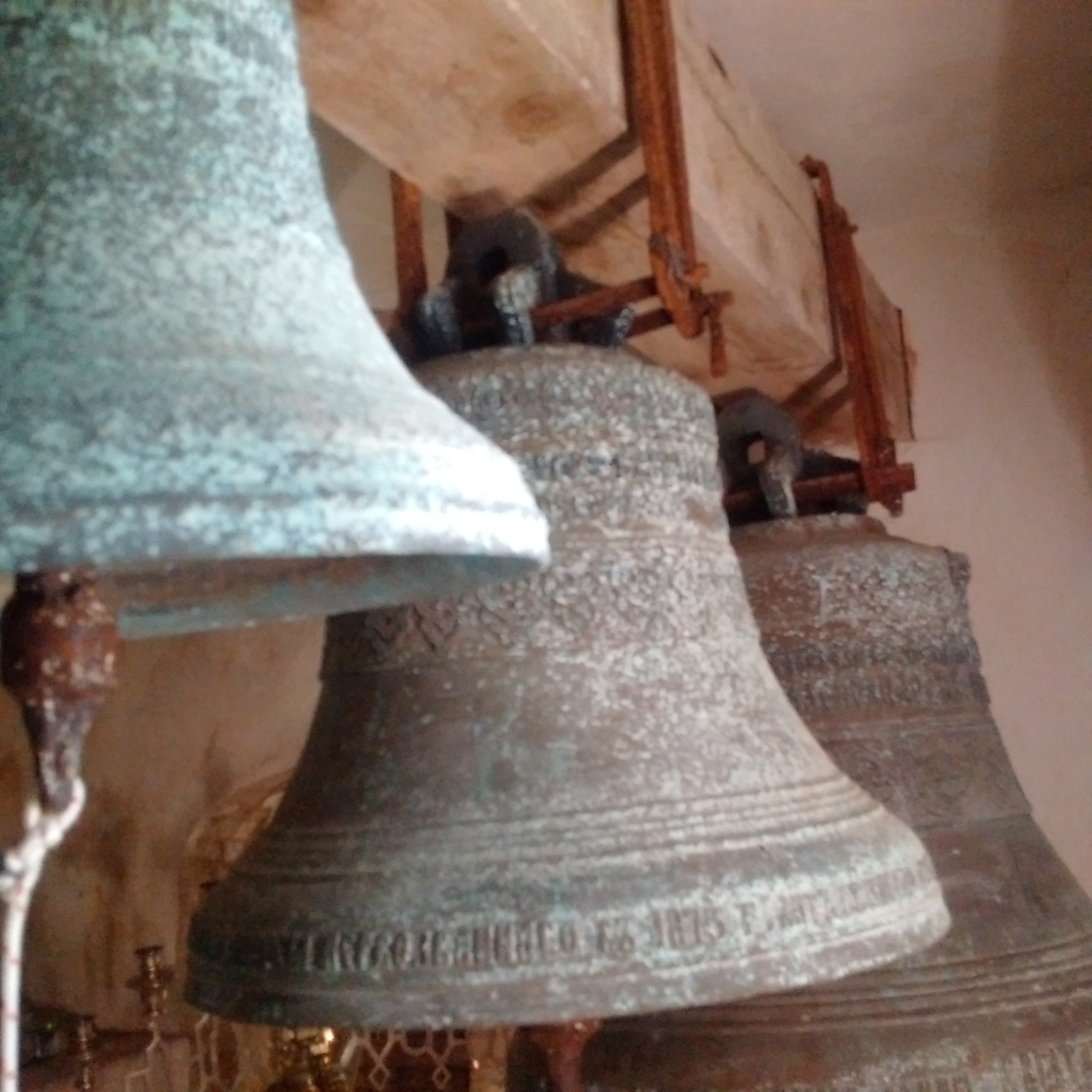 Sehr spannend sind auch die Glocken im Kirchturm. Die beiden größten der 5 Glocken müssen geschweißt oder neu gegossen werden. Die klingen dissonant und die größte wie ein scheppernder Blecheimer. Sie wurden im Krieg vor den Schergen versteckt und später wieder aufgehängt. Bei der Aktion sind sie wohl beschädigt worden. Gießjahr 1873. Die drei anderen müssen an der Aufhängung und am Klöppel überholt werden. Alle Glocken sind starr an einen Balken geschraubt, um sie zu läuten müssen sie an einem schwingenden Joch hängen. Zwei Schwestern stecken sich Ohrstöpsel rein und läuten die Glocken von Hand nach Bedarf wie starre Uhrglocken. Ich will mich nun kümmern um eine Firma, die Glocken reparieren kann und um ein Angebot für den Neuguß und Aufhängung. Vielleicht treiben die Schwestern das Geld auf.