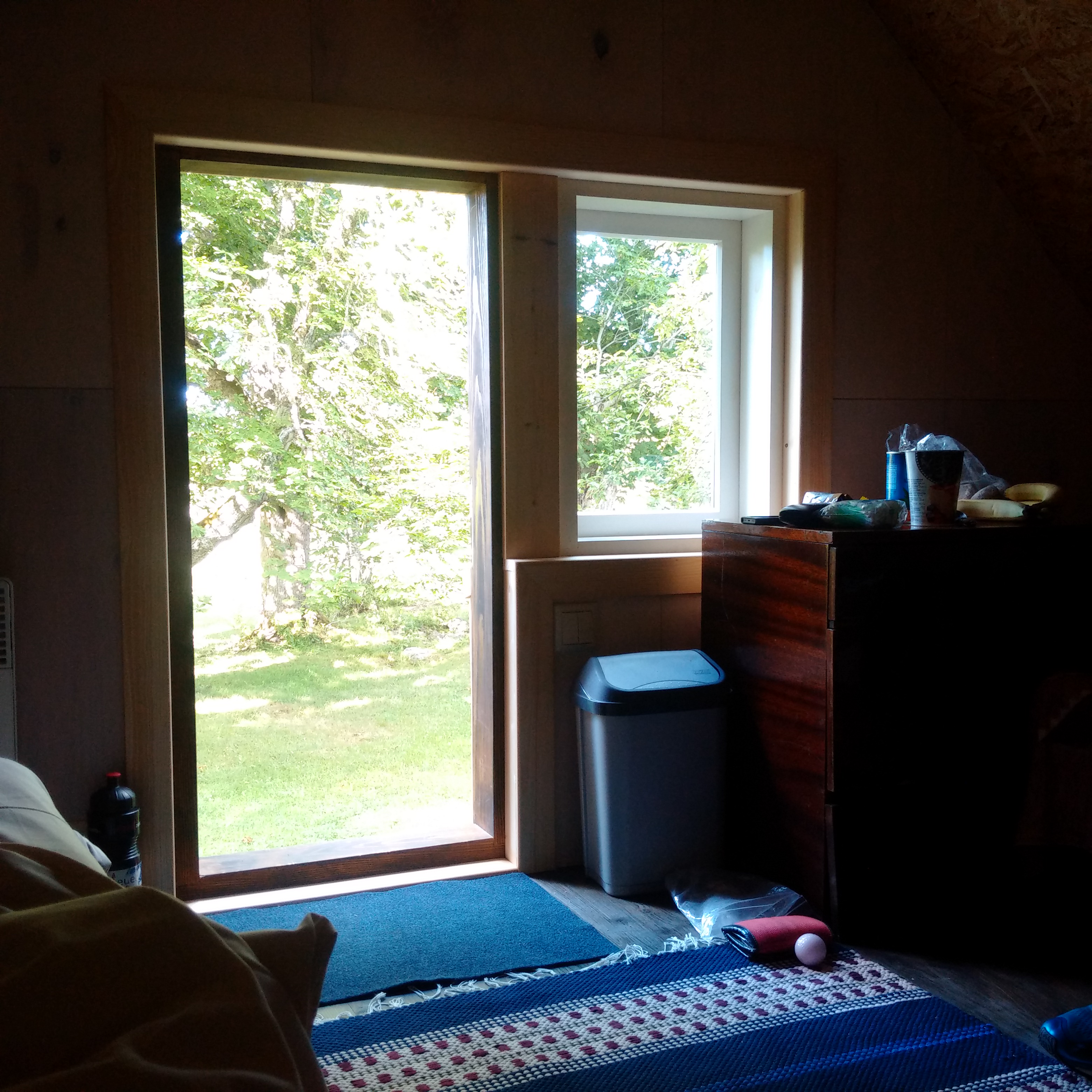 Meine Unterkunft ist heute direkt unterm Dach eines uralten, renovierten Holzhauses. Jetzt regnet es auch noch und so ist es besonders gemütlich.