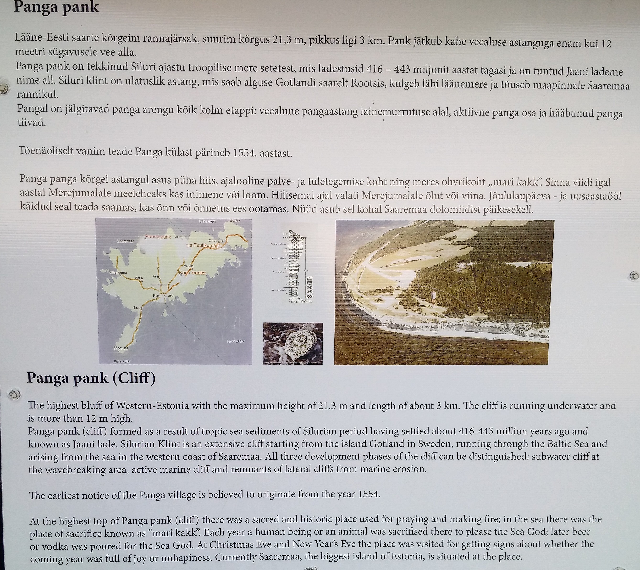 Man kann nicht sagen, daß in Panga der Punk abgeht, aber immerhin – über den Tag verteilt sind es doch viele Touristen, die sich die das bis zu 21 m aus dem Meer ragende Cliff ansehen wollen. Es ist der selbe Stein, der an der Südküste Gotlands zu sehen ist, beide Inseln liegen an der selben Kante.
