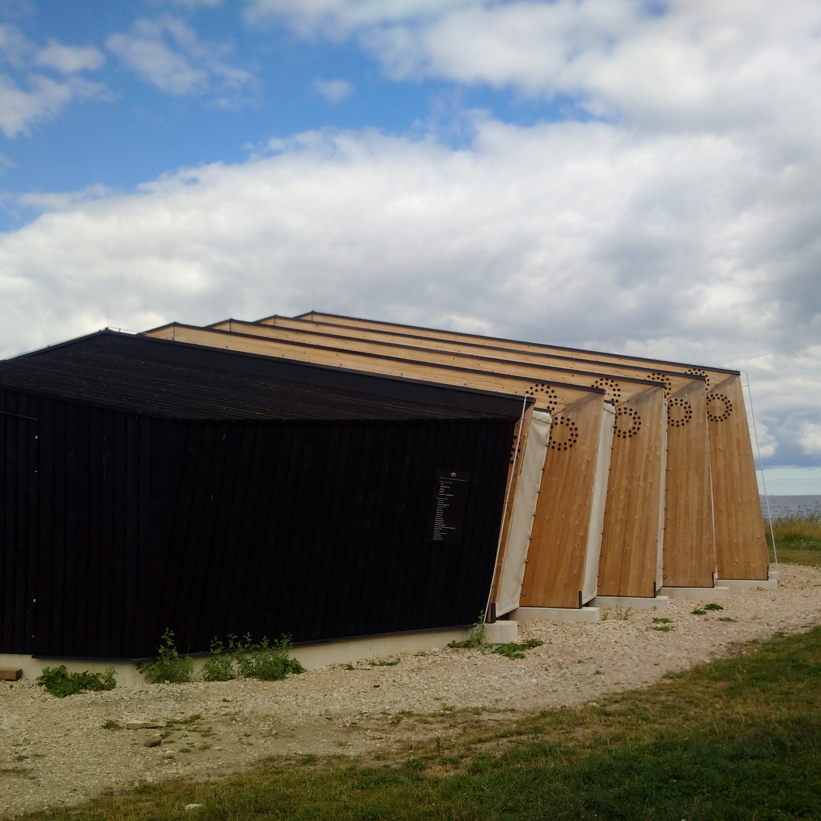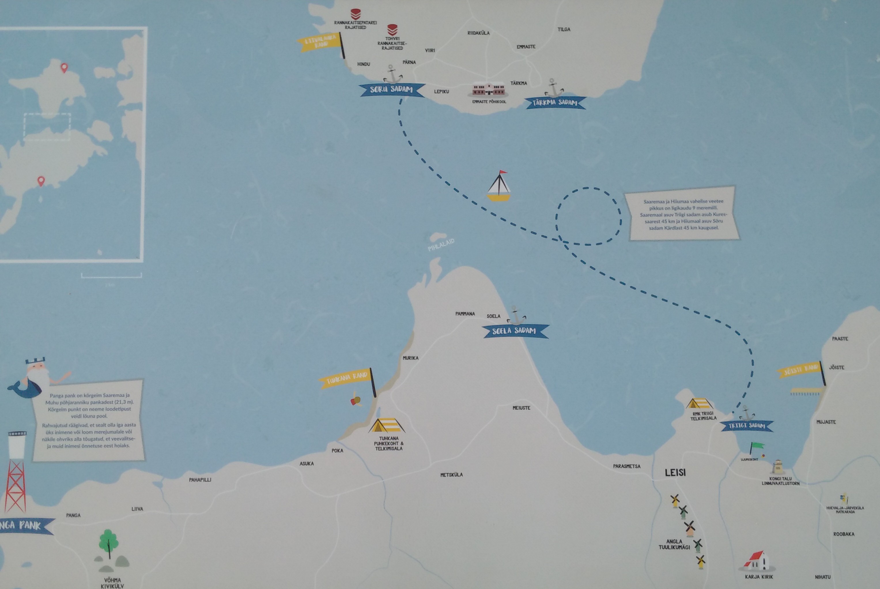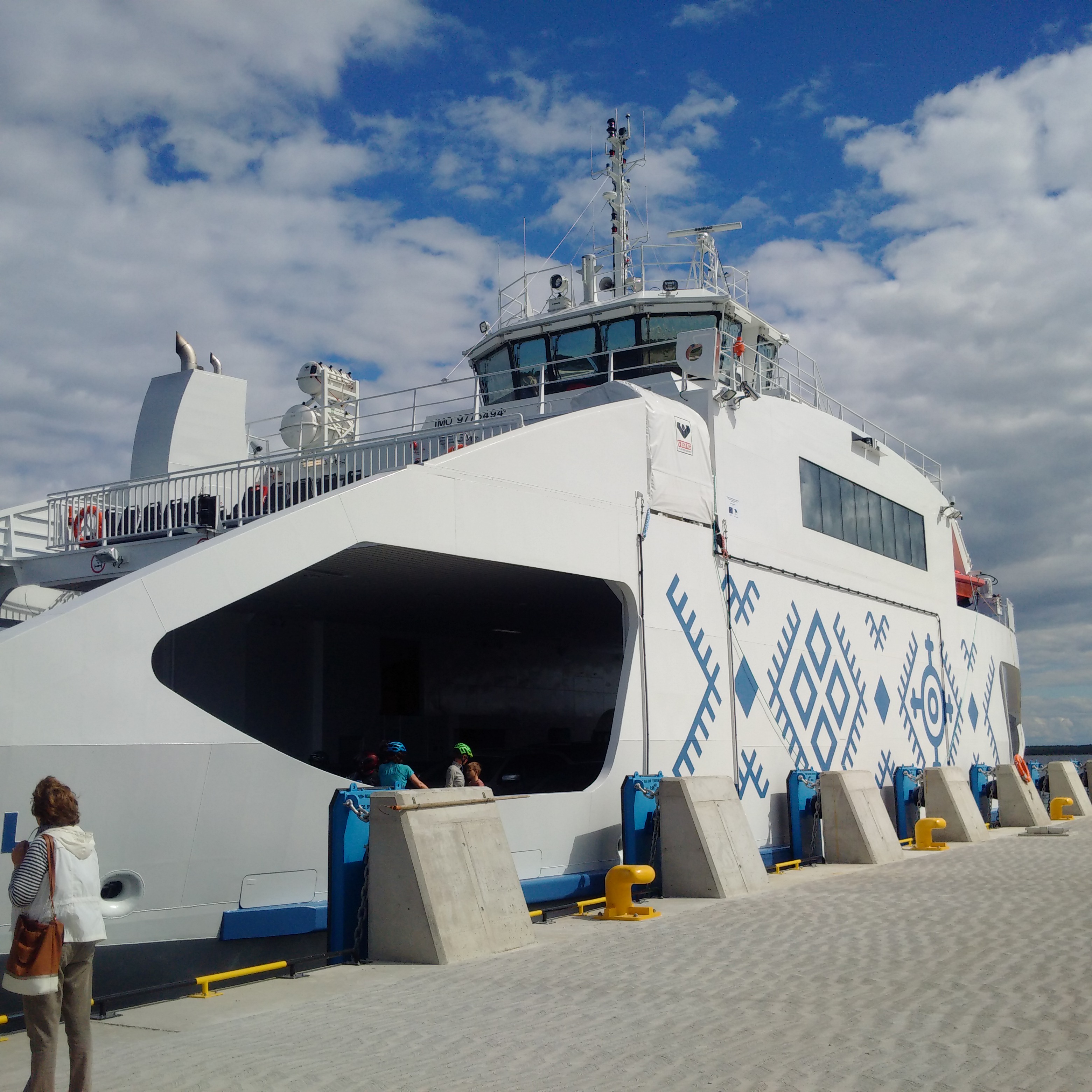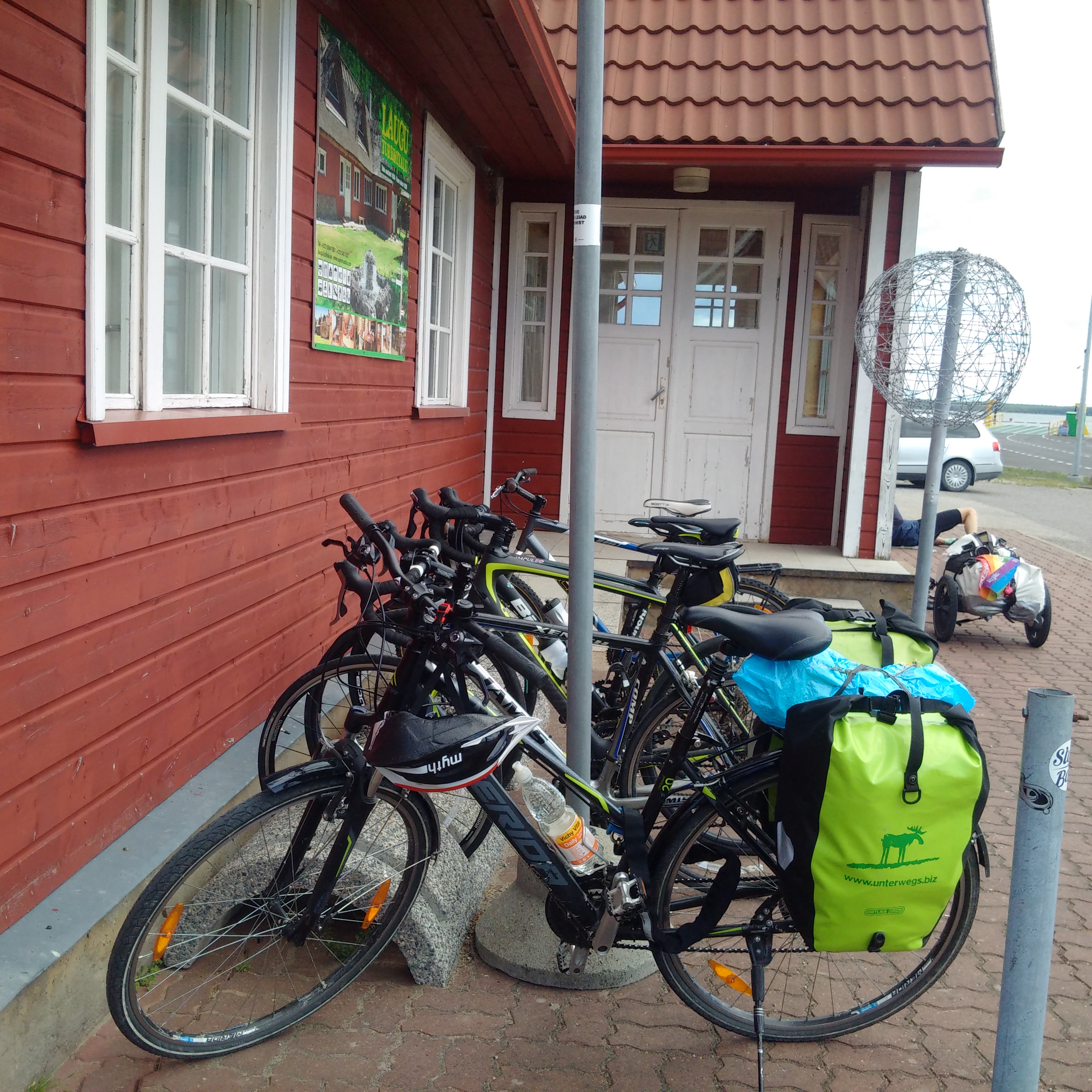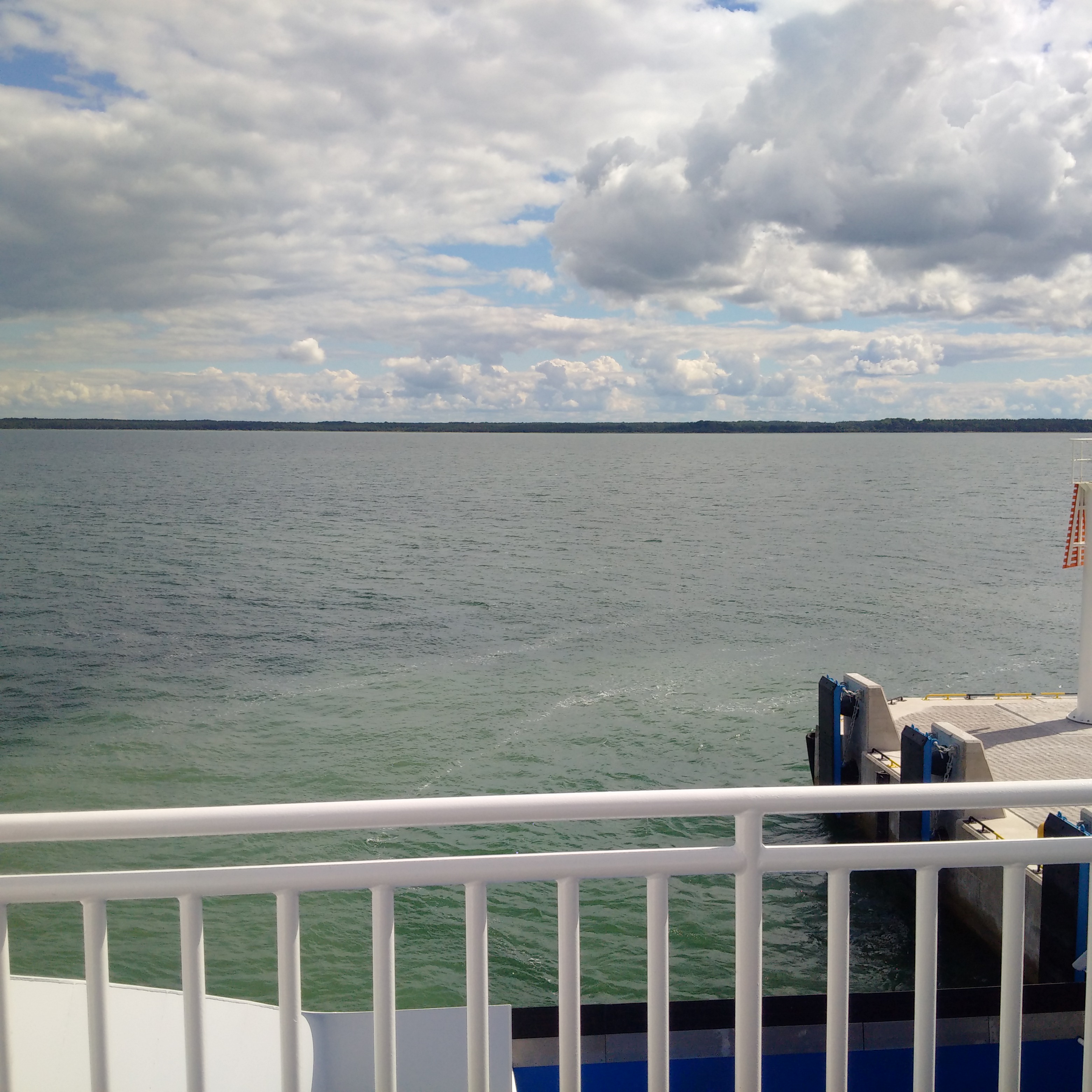 Heute setze ich mit der Fähre über nach Hiiumaa, der zweitgrößten estnischen Insel – nur 40 Minuten Fahrzeit. Bis zum Hafen in Triigi bin ich 4km gewandert. Ich würde nachher noch genug laufen können (35km) und außerdem komme ich dann nicht verschwitzt auf die zügige Fähre. Der Hafen hat wieder seine eigene Atmosphäre : wartende Autos, ein kleines Café, Radfahrer und Wanderer, die sich an diesem Punkt zusammenfinden, weil sie halt alle rüber und nüber wollen.