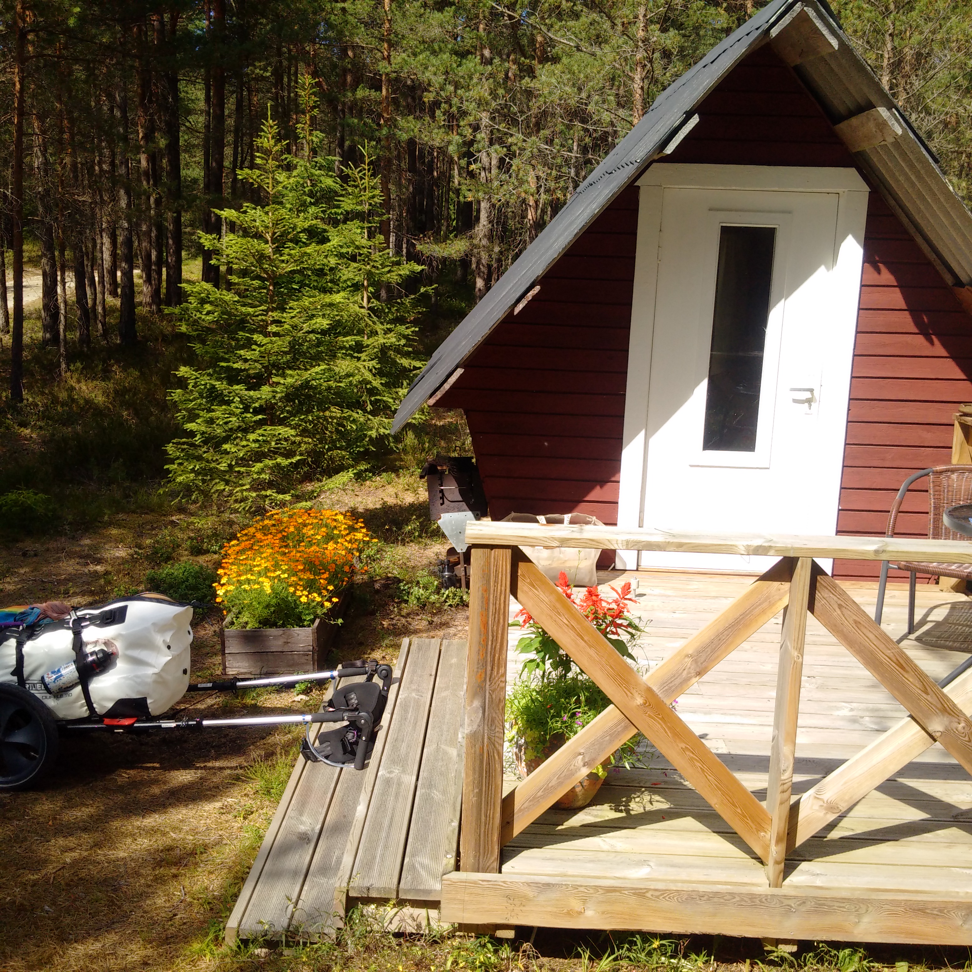 Kudelrund gefressen und glücklich laufe ich langsam die letzten drei Kilometer. Die Wirtin empfängt mich Freude strahlend und zeit mir mein Minimini Häuschen. Es steht mitten in einem Waldstück und ist absolut süß.