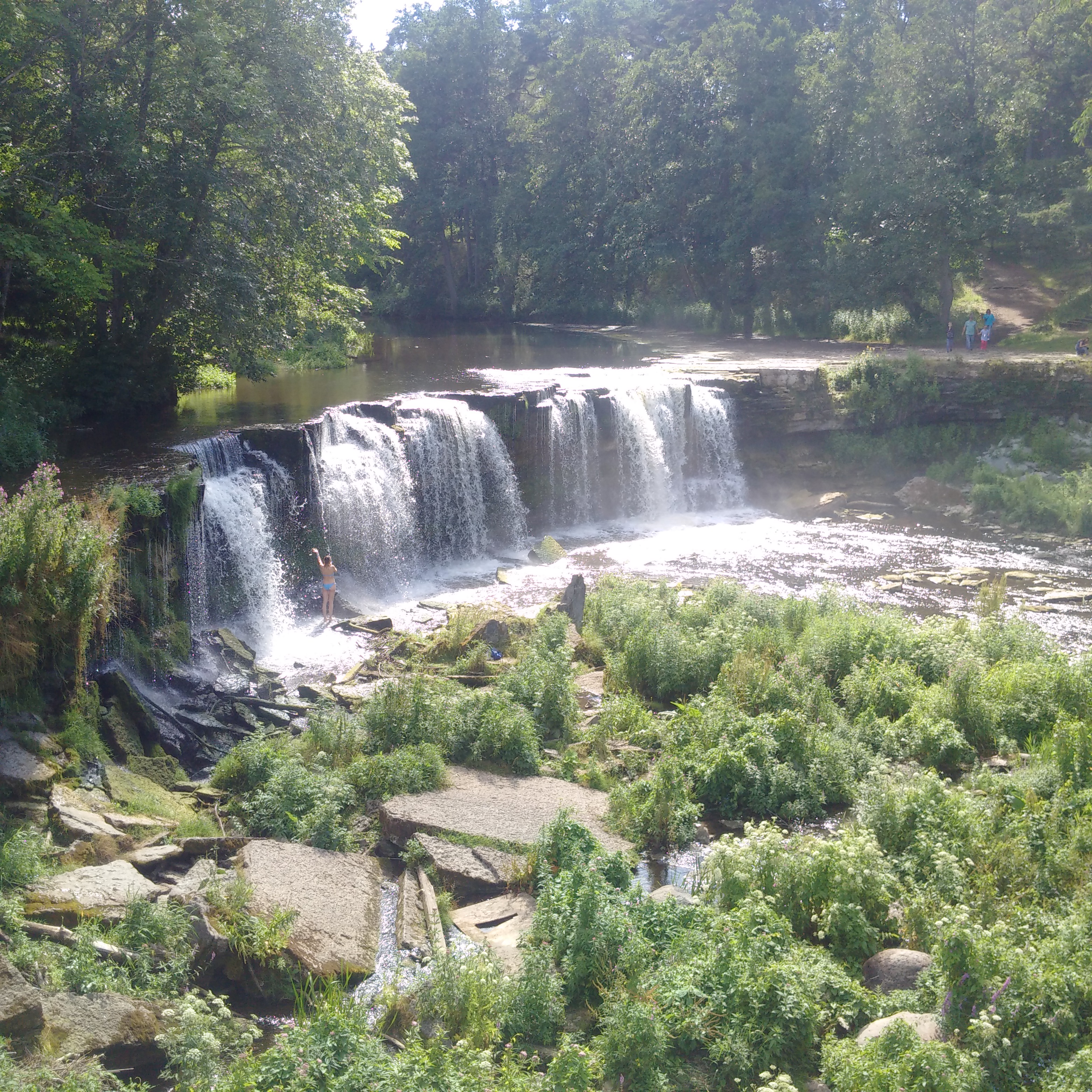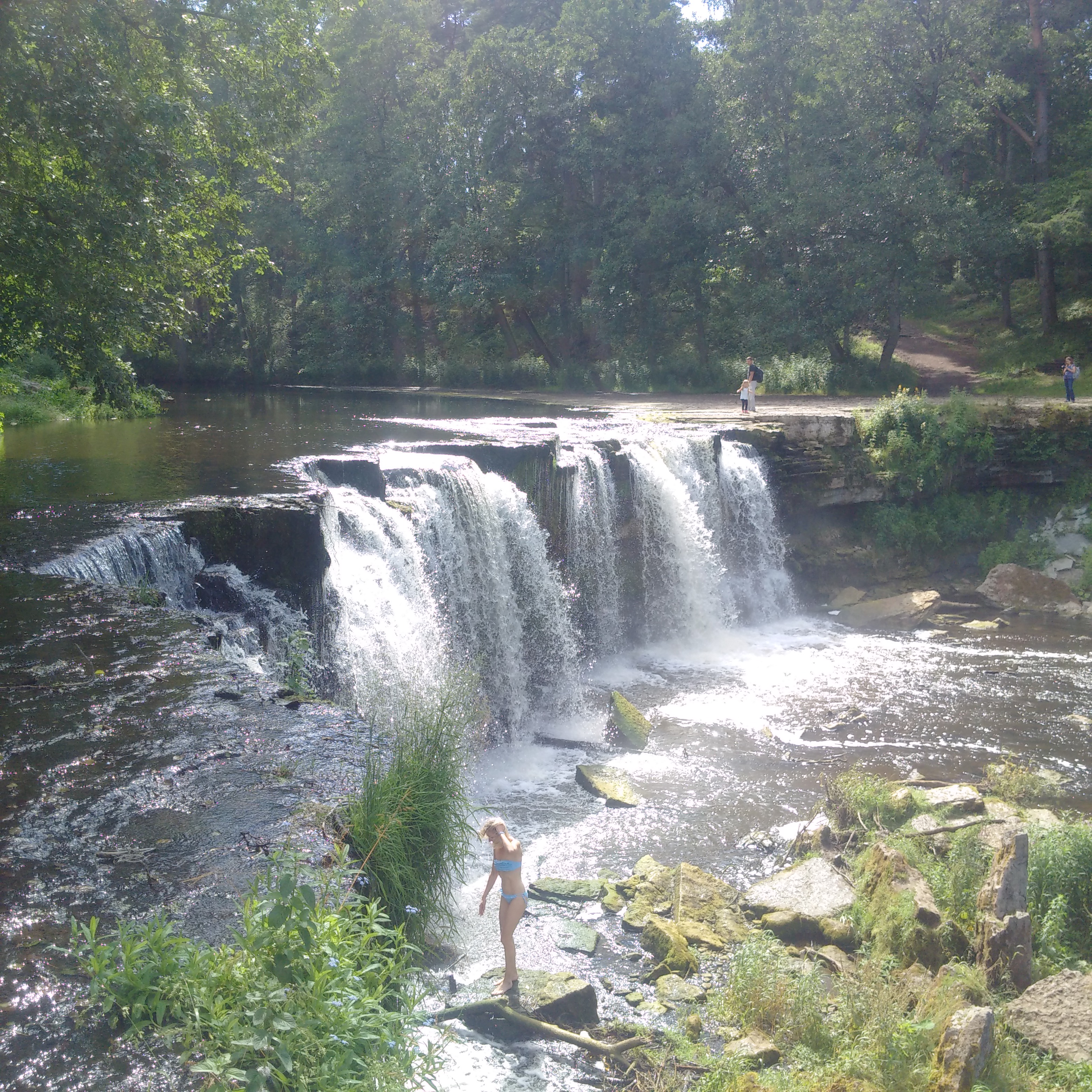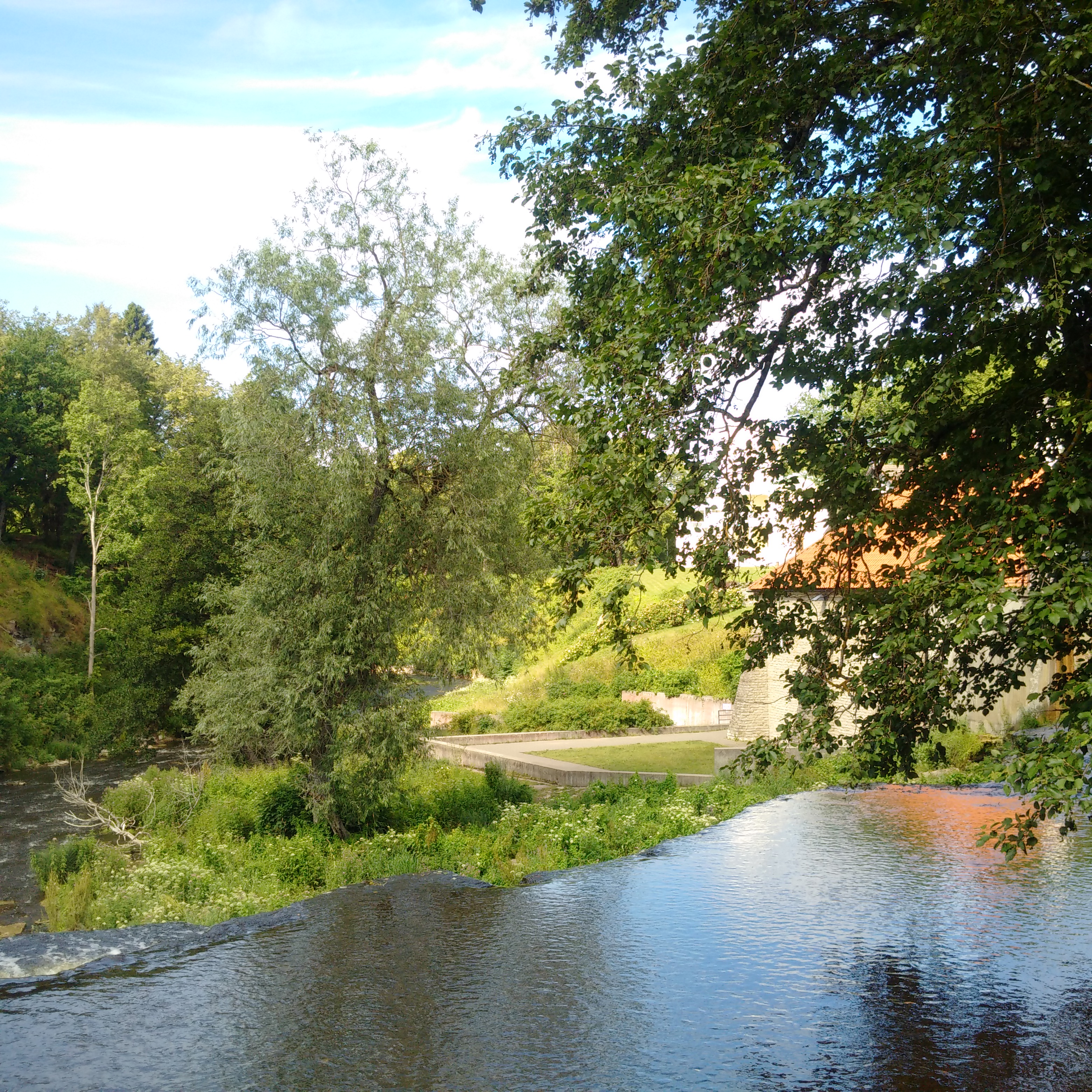 Direkt unterhalb des Schlosses fällt das Flußwasser in die Tiefe, bovor es in die Ostsee fließt. Ich mache reichlich Fotos und dann entdecke ich da unten sogar eine echte Nymphe!