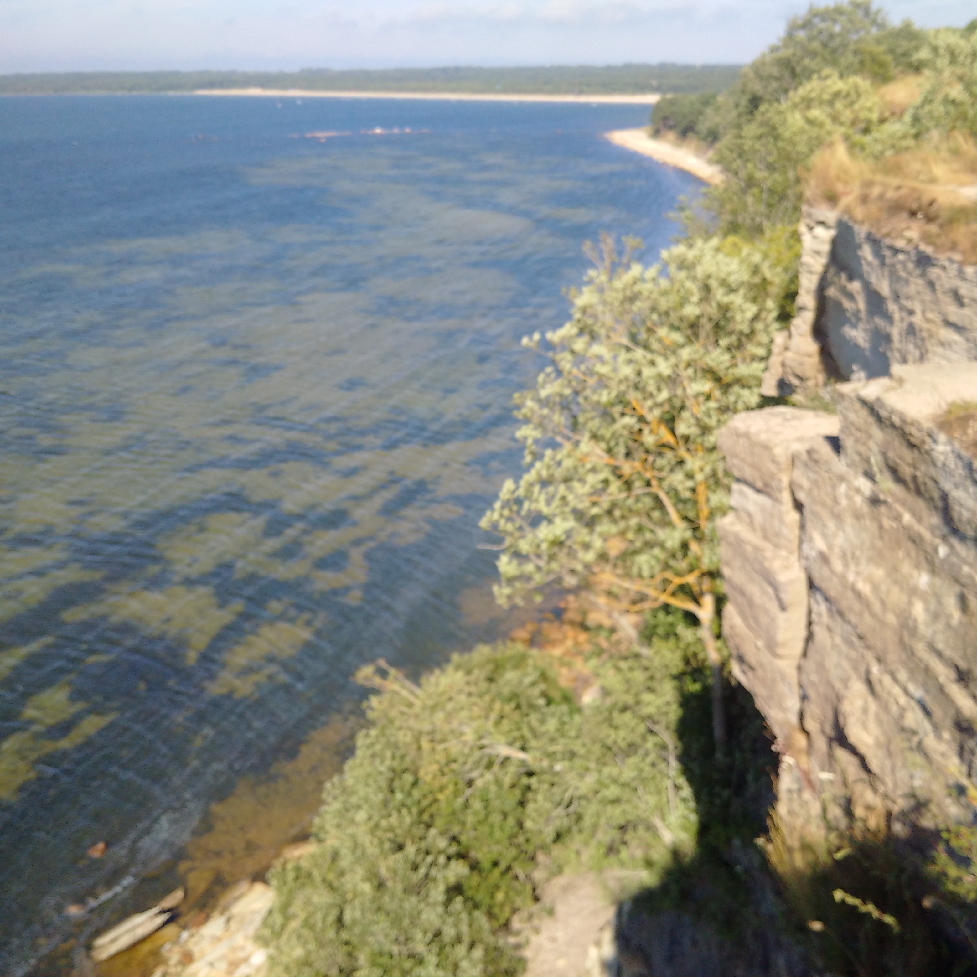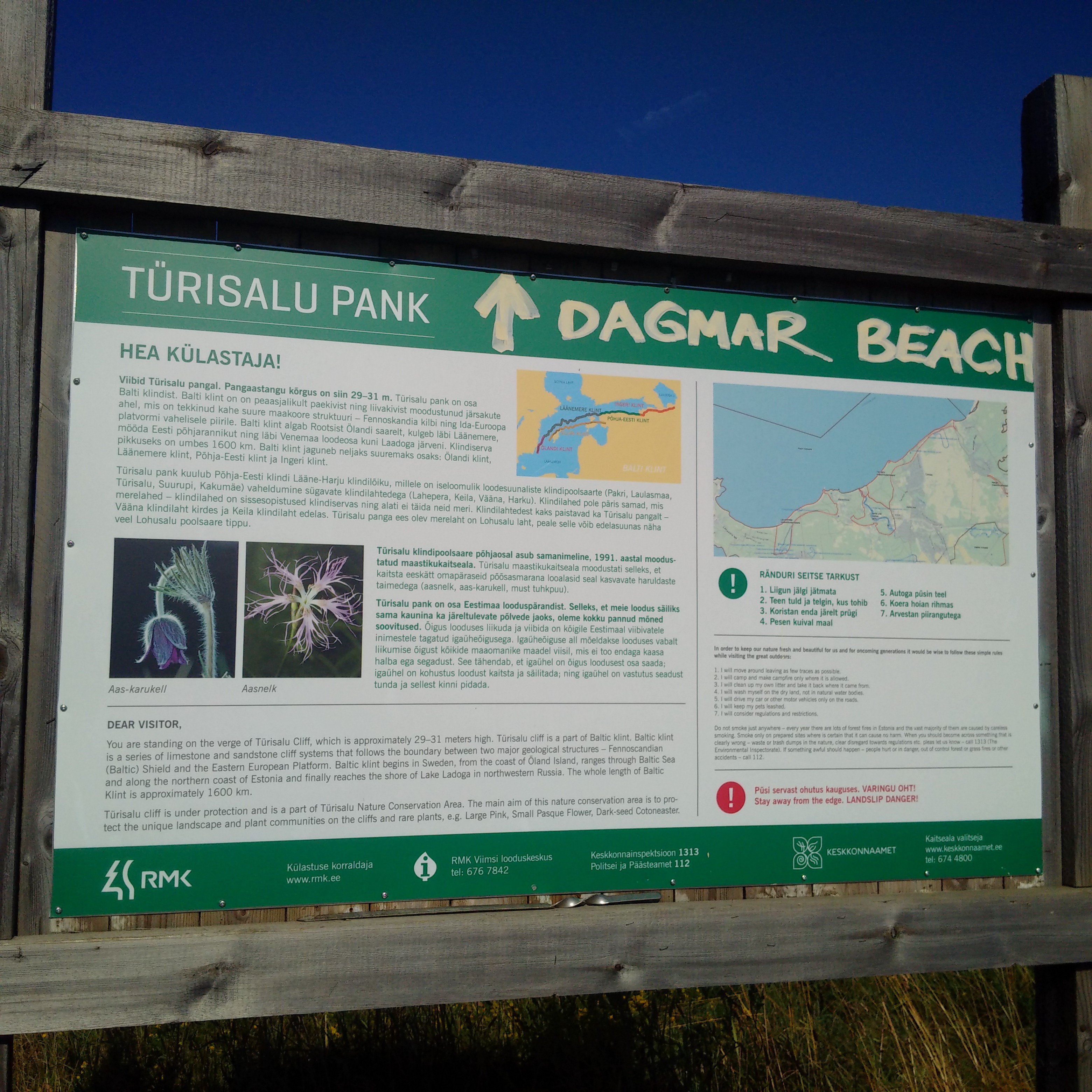 Entlang der Küste steigt die Straße immer weiter an, denn hier sind die Klippen von Türisalu. Mit 27-31 m sind sie sogar noch höher als Panga Pank auf Saaremaa, sie gehören zur selben Formation. Witzig: Hier gibt es eine Bildergalerie aber nichts zu essen und kein WC.