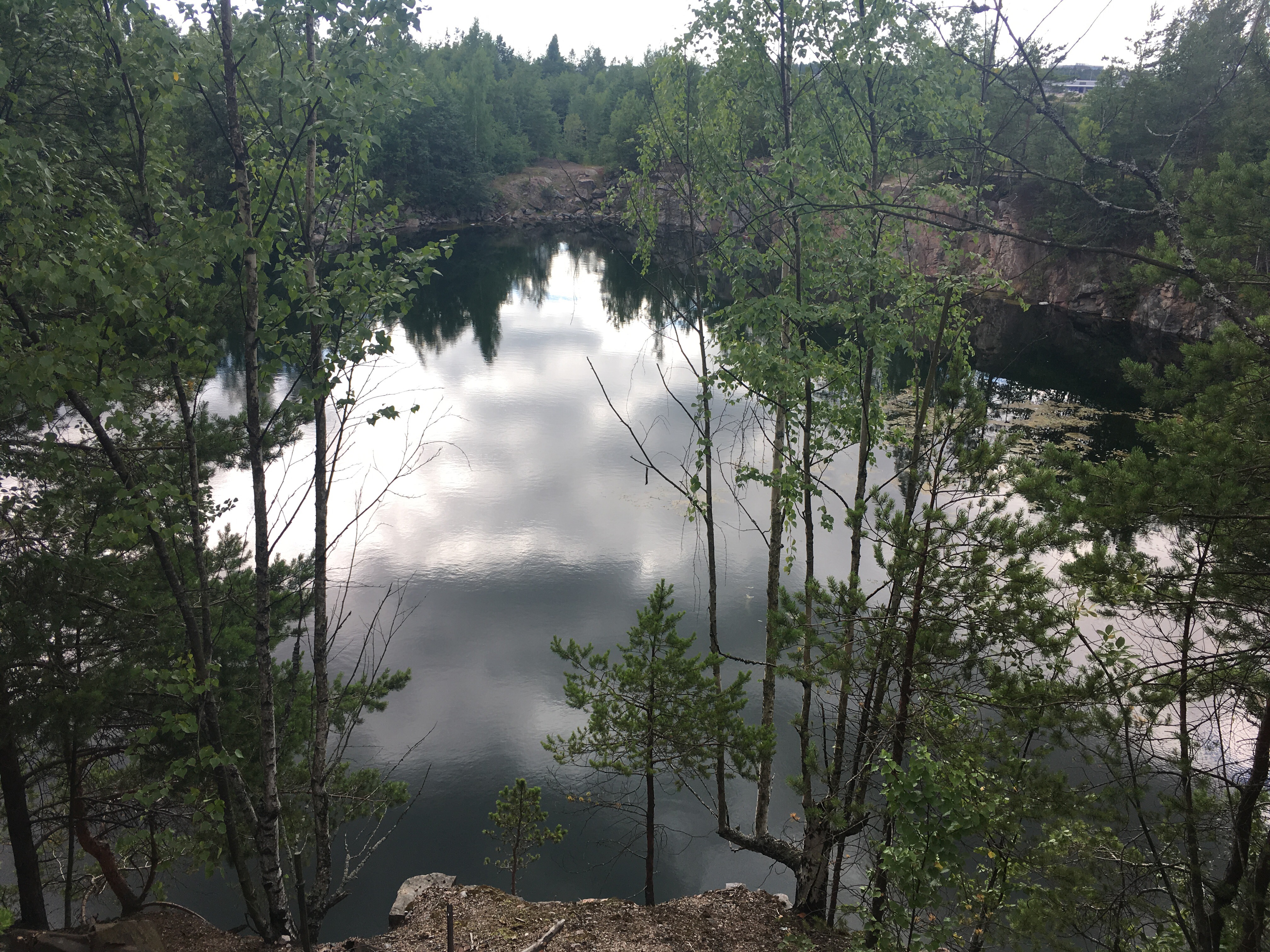 Interessant ist auch, daß nur wenige hundert Meter abseits das Land genau so aussieht, wie ich es vom Baltikum kenne, kleine Höfe mit Holzhaus, ein Friedhof und ein kleiner (Steinbruch-) See.