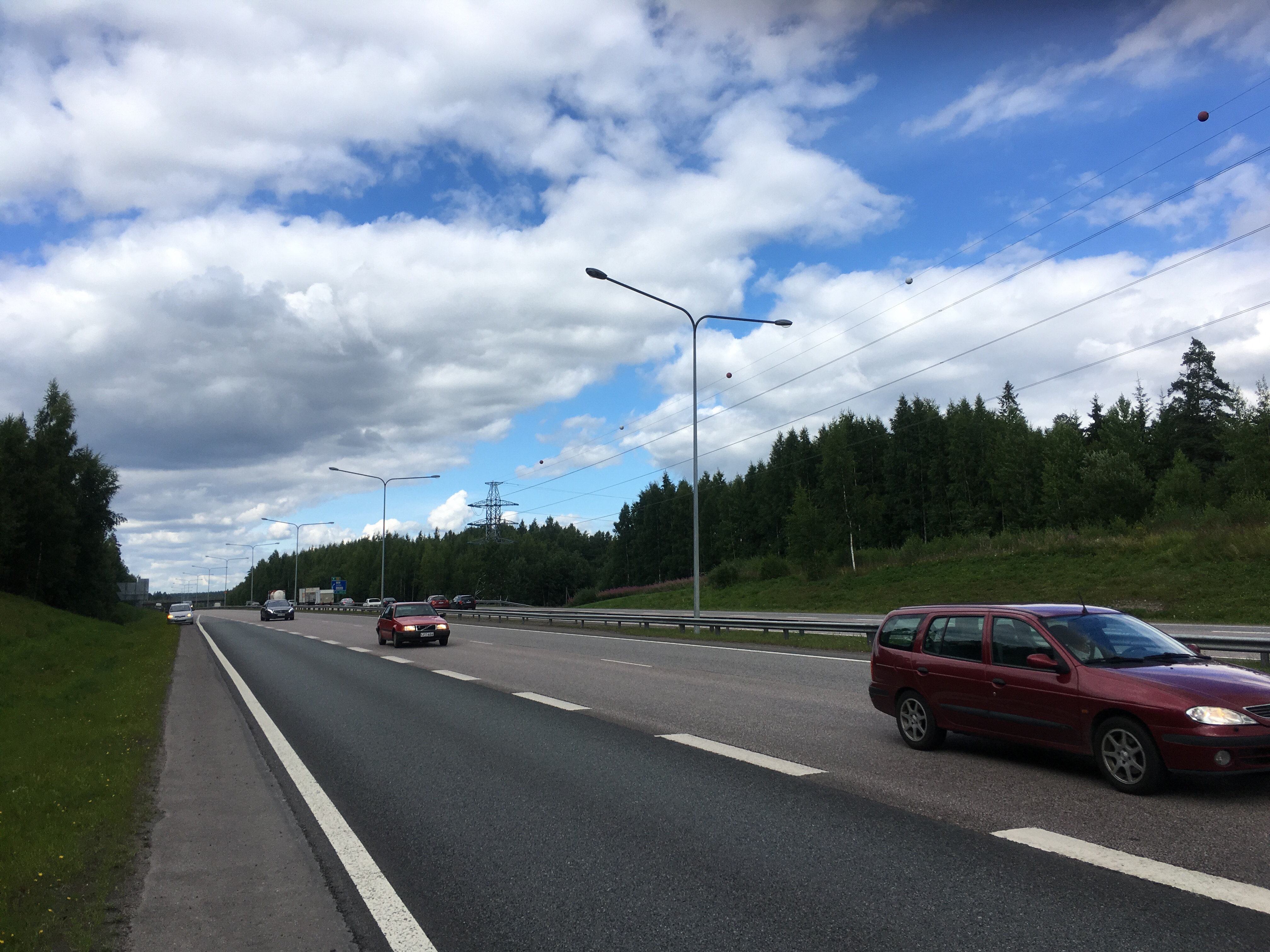 Leider kann ich so gut wie keinen der Wege laufen, den ich mir programmiert habe, weil vieles hinter dem Zaun liegt statt davor. Sowas konnte ich auf meinem GPS nicht erkennen. So laufe ich einen wesentlich größeren Bogen. Die Straßen sind meistenteils mit Radwegen gesäumt, aber nicht alle, und ich lande ich tatsächlich auf der Autobahn.