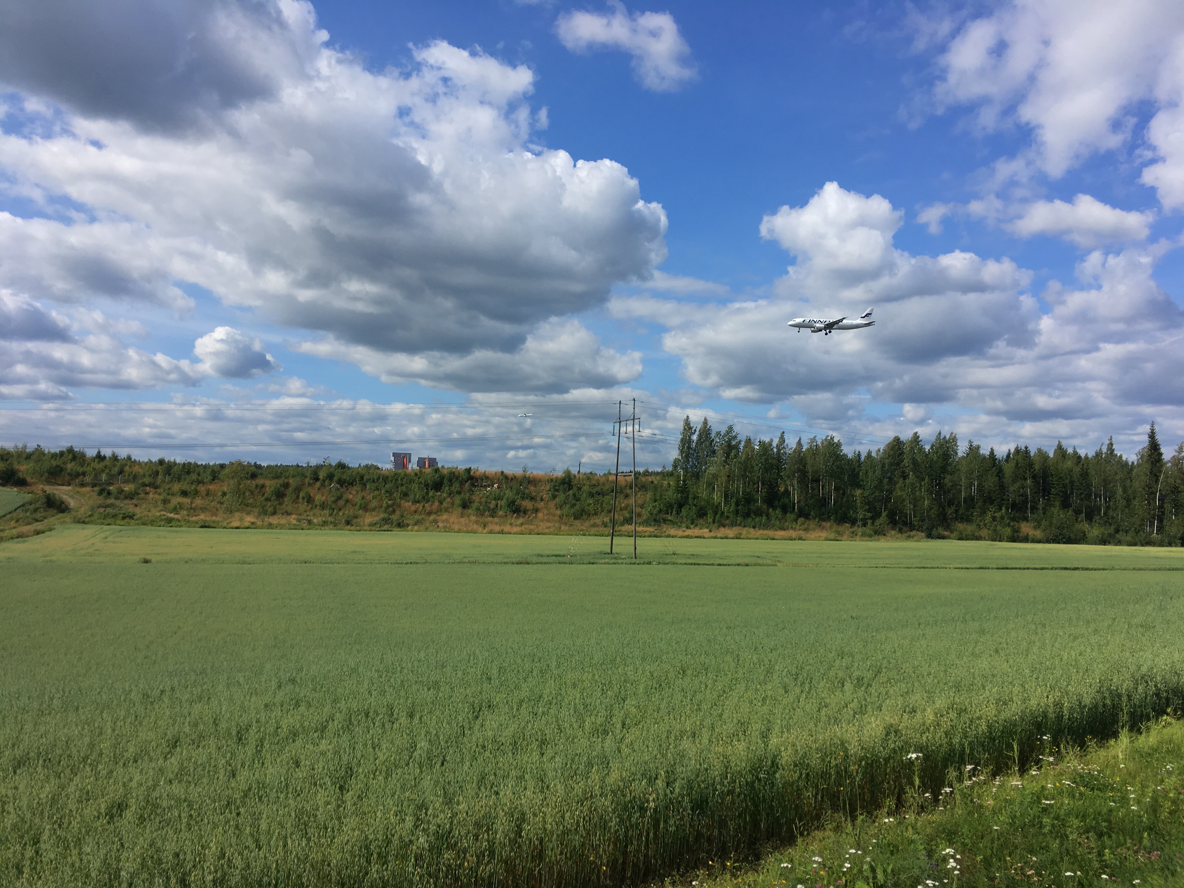 Teilweise gibt es deshalb auf den Kuppel der kleinen Hügel moorigen Untergrunds, denn das Wasser sammelt sich dort wie in einer Schüssel. Ich versuche all meine Sinne zusammen zu nehmen und gucke dauernd auf das Navi, um zumindest grob die Richtung zu behalten. Über mir kommen immer wieder landende Flieger rein, vielleicht 50-100 m über mir donnern sie lang. Meist bin ich zu spät um die dicken Brummer zu fotografieren, denn eigentlich will ich ja laufen.