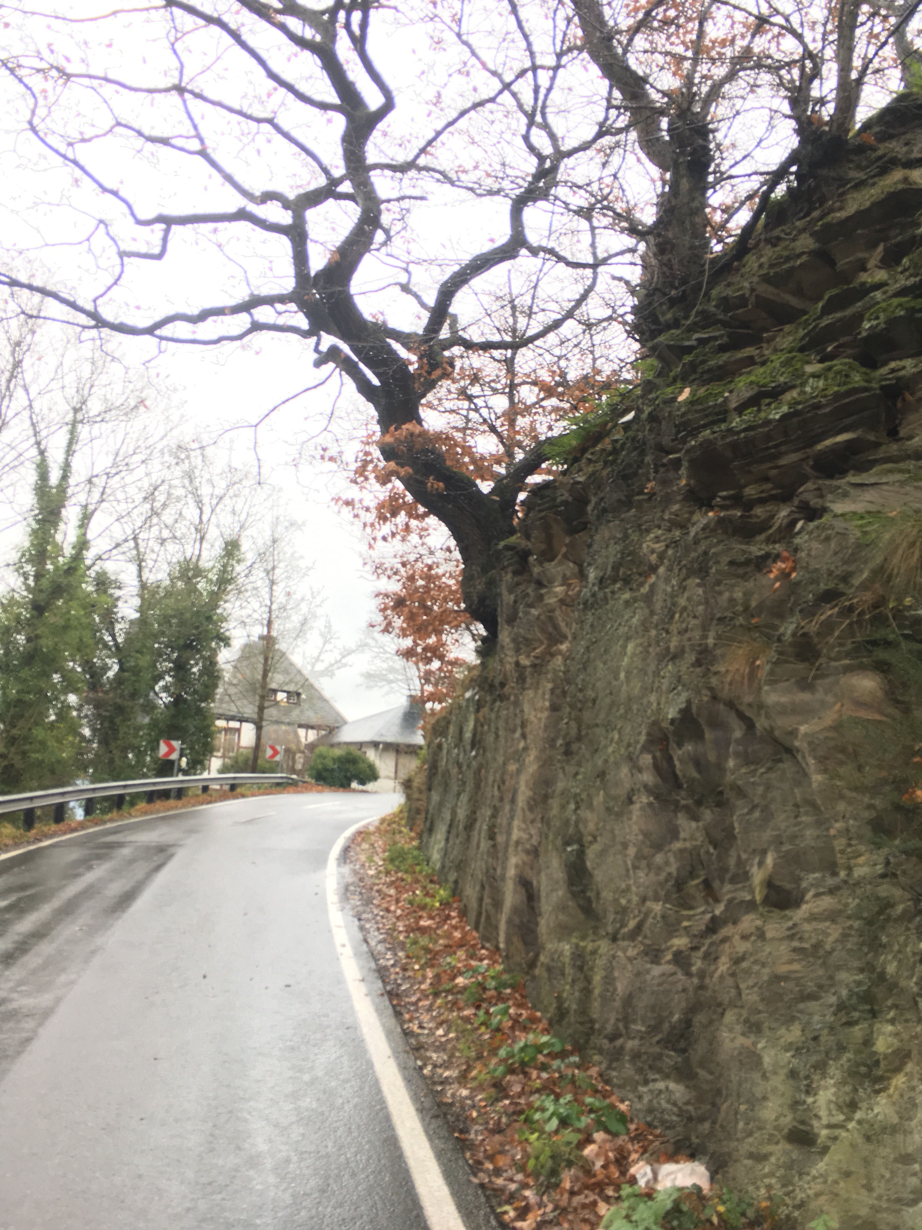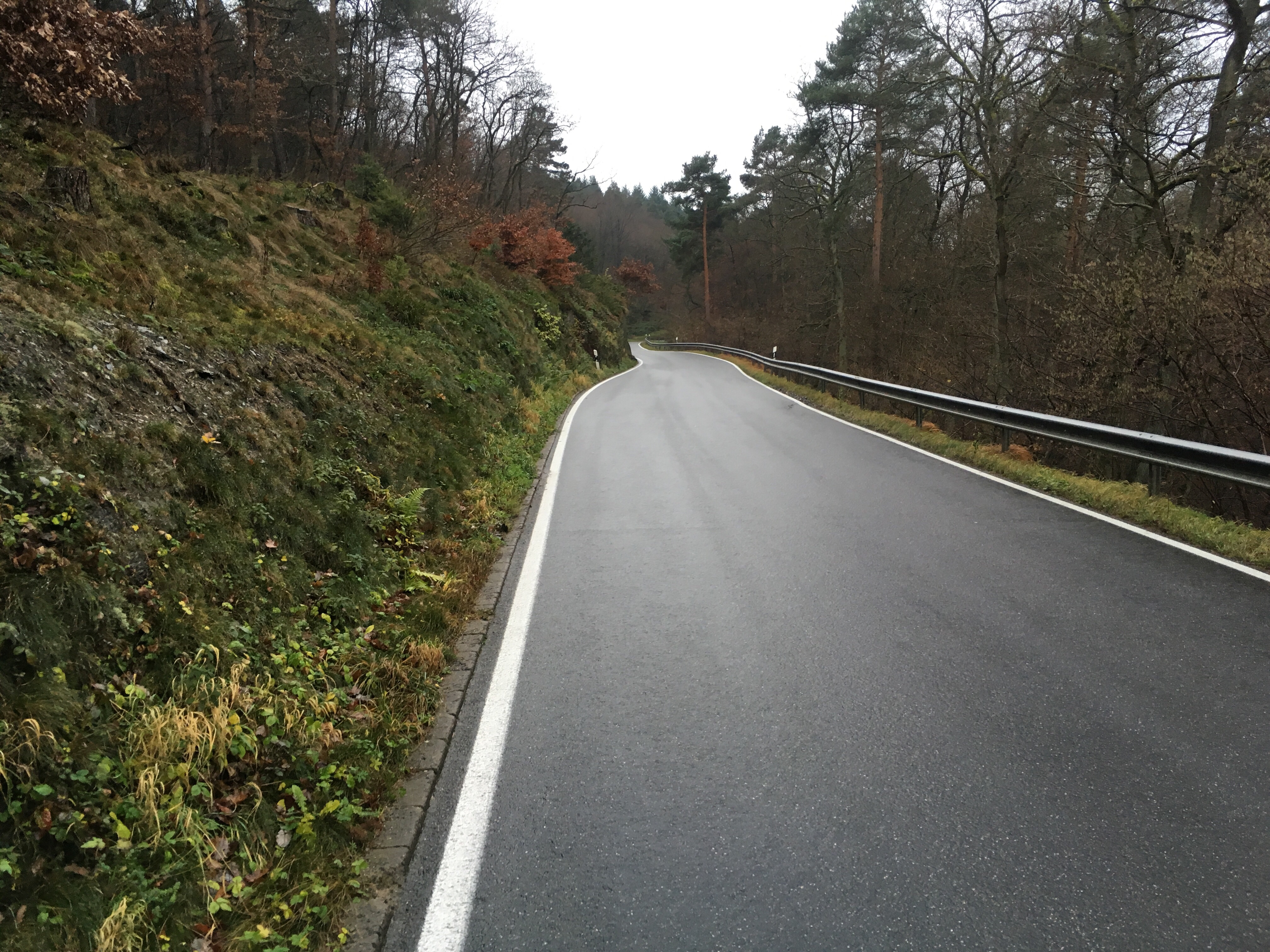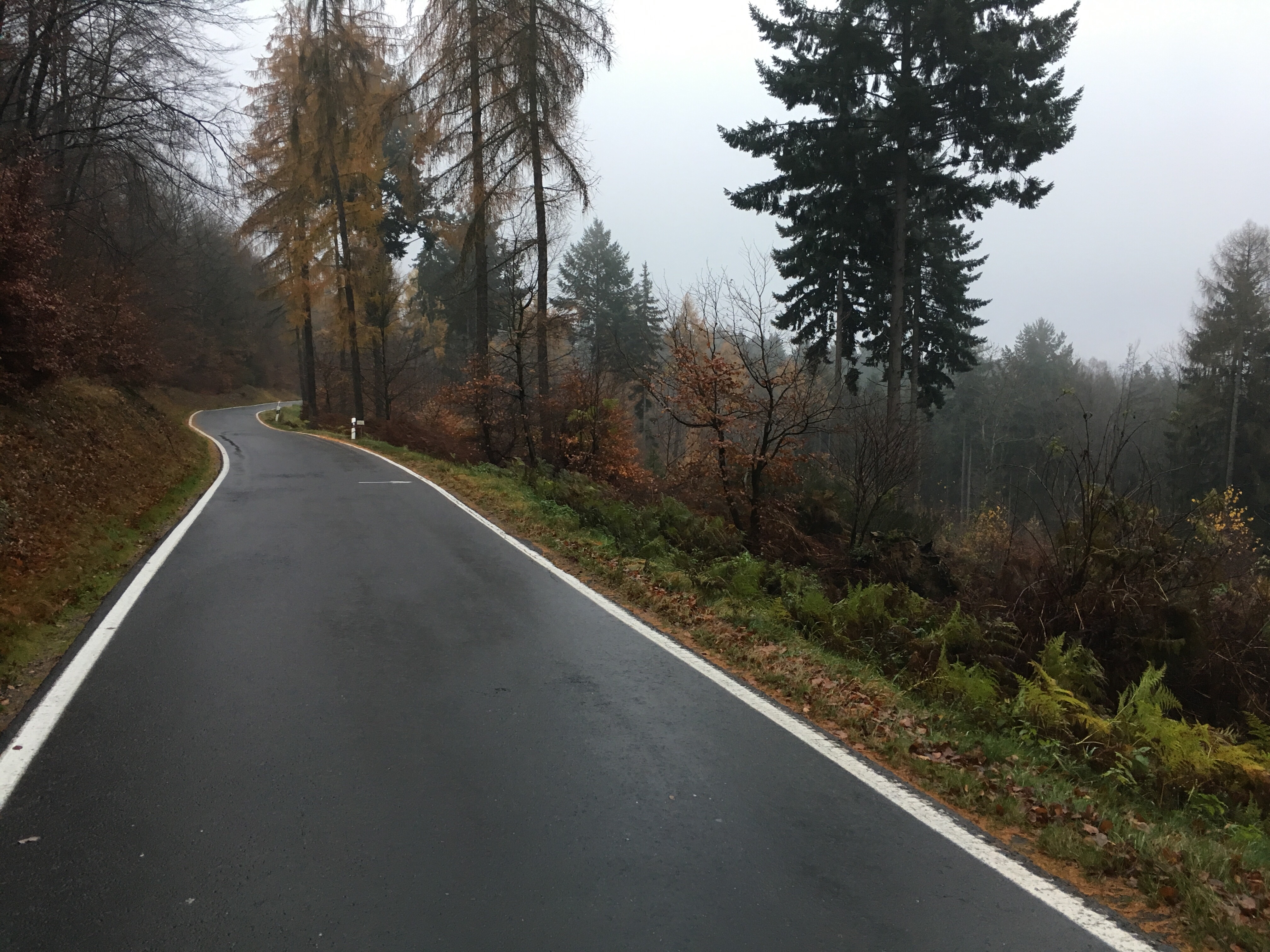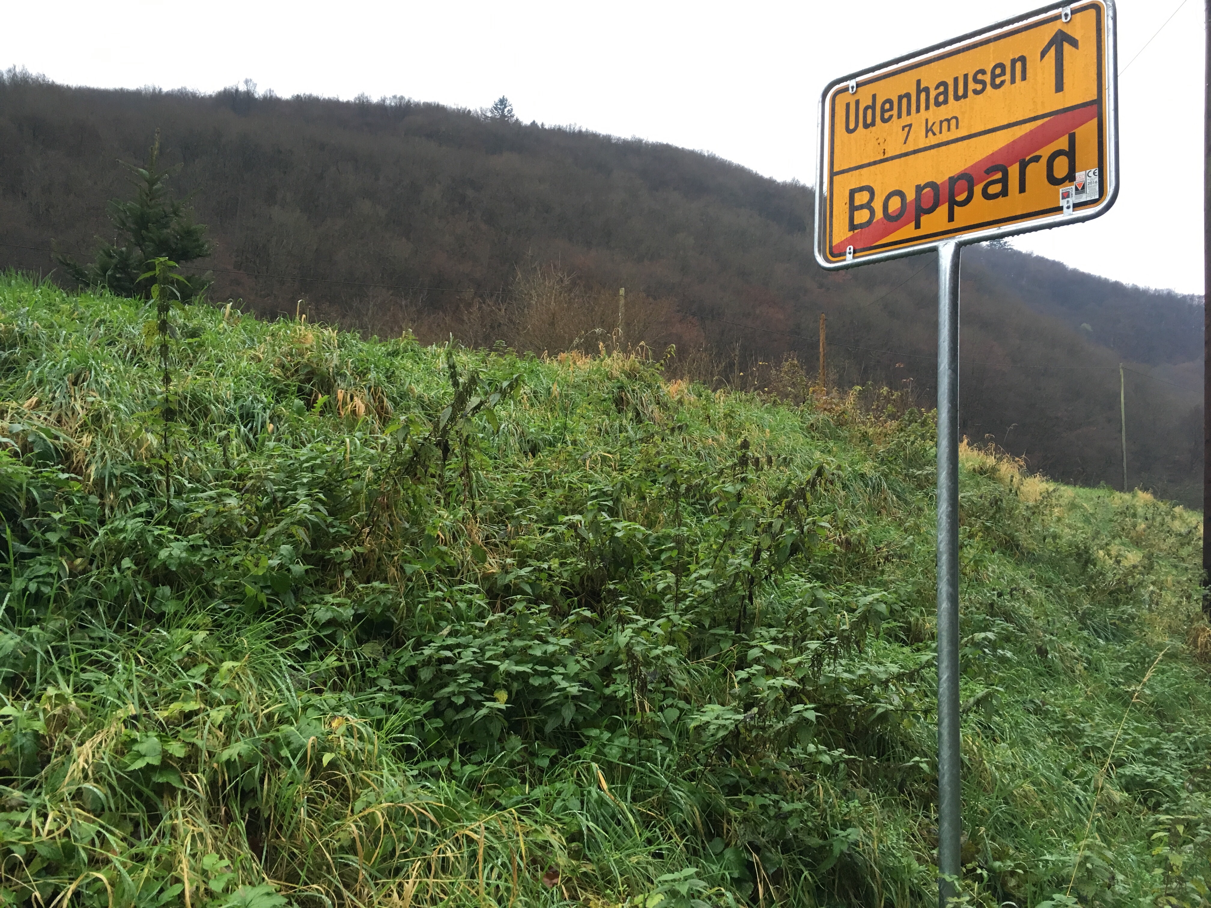 Erst geht es in einem Tal sehr weit bergab auf einer fast gar nicht befahrenen Straße, dann kommen die Ausblicke auf die Stadt Boppard und das Rheintal.