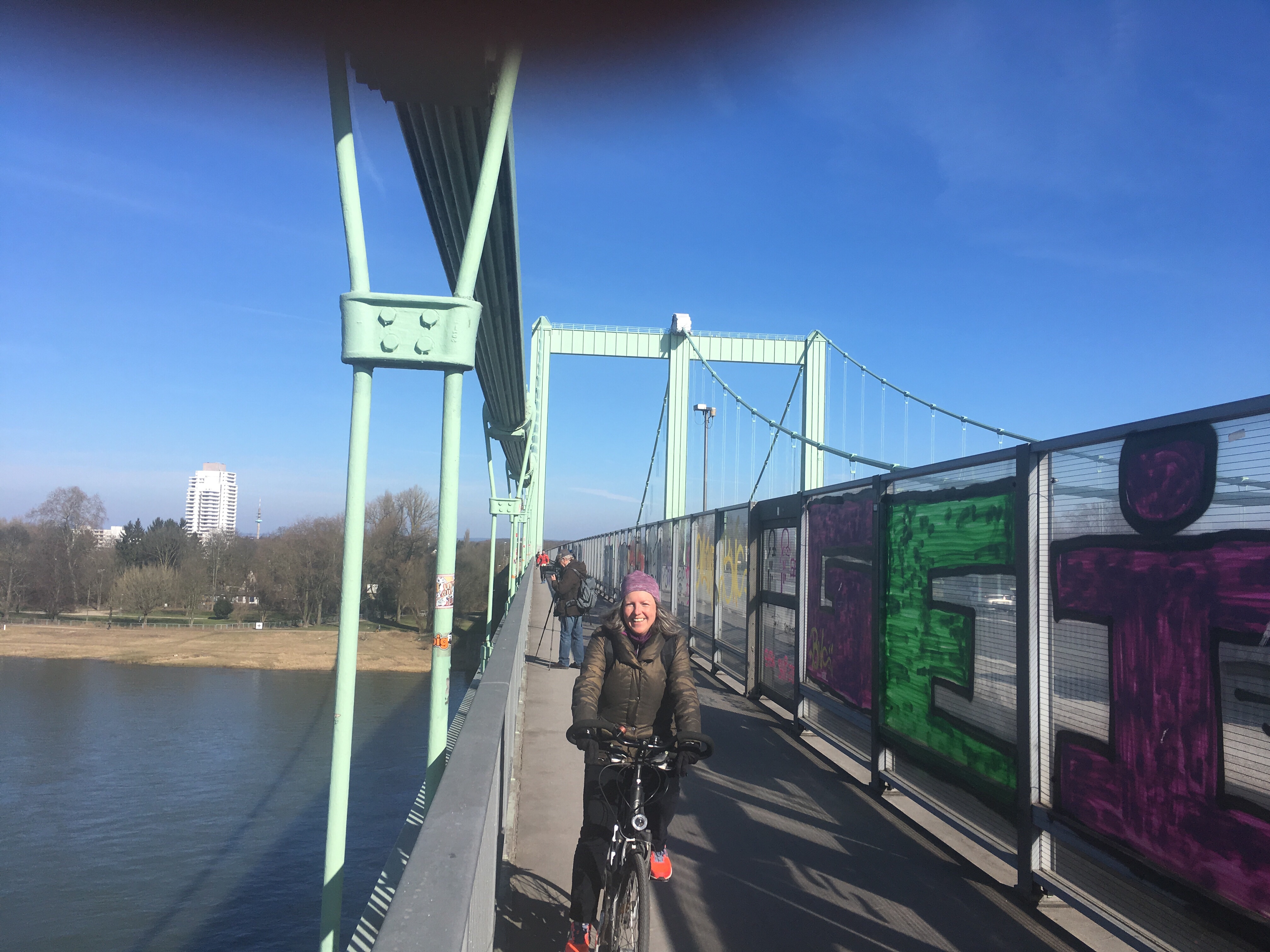 Er sagt, es ist nicht sein Tag. Und so ziehe ich weiter. Auf der Rodenkirchener Brücke haben wir einen tollen Blick auf das Kölner Panorama.