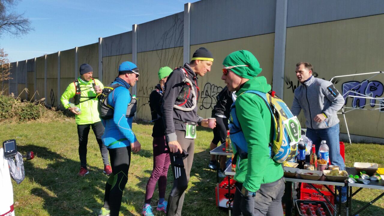 Am Verpflegungspunkt km32 war die Stimmung sehr gut, ein riesiges Buffet, weshalb ich mich fragte, ob das denn im Ziel auch so sein würde. Ich trank eine Brühe, einen dünnen Kaffee, aß Kekse, einen Riegel und ein Stück Banane.