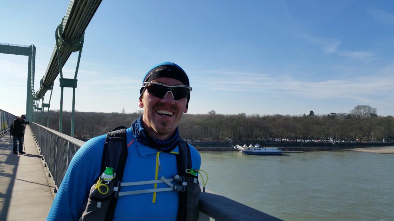 Die Bedingungen waren ideal: kalt aber sonnig, wenig Wind und nur entspannte Läufer um mich herum. Der Lauf war perfekt organisiert: Start am FC Stadion in Müngersdorf. Ein Verpflegungspunkt genau in der Mitte, auf der rechten Rheinseite. Ca 100 Starter.