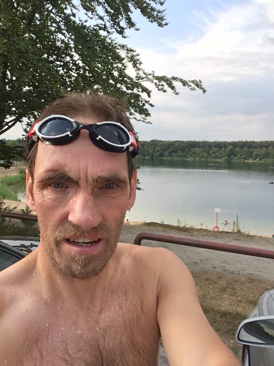 Und ich habe das Schwimmen für mich neu entdeckt! Nicht, daß ich ein guter Schwimmer wäre, aber nach einem heißen Arbeitstag in den Walldorfer Badesee zu springen und ca.1700 m in gut 50 min zu schwimmen, ist eine echte Wohltat. 30% Rückenkraul und der Rest Brustschwimmen. Vorwärtskraul kann ich nur 10 Züge lang, ich komme mit der Atmung nicht zurecht.