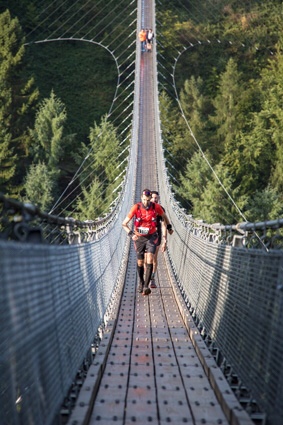 Gut – ich wohne im Hunsrück und ja- der Lauf führt über die schönste Hängebrücke der Welt.