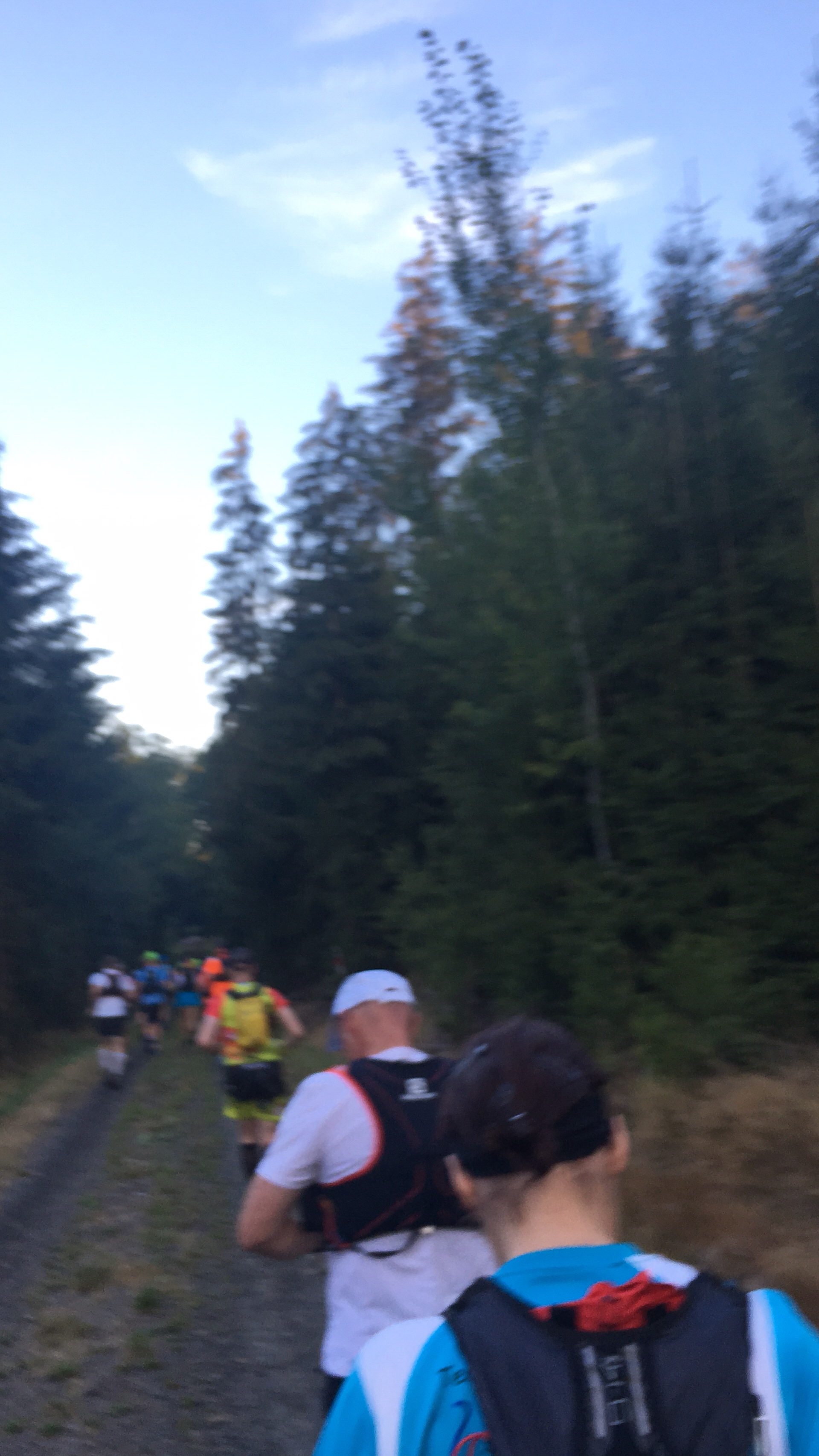 Bei km 53 habe ich die Nachteile der Cola überwunden, aber ich brauchte für die 6km auch eine Stunde. An Laufen war da nicht zu denken, obwohl mein Körper jetzt nicht mehr schmerzte und es dem Bauch besser ging. Läufer um Läufer überholt mich. Meine Zeit ist mir schon längst egal aber ich will laufen! Lieber Laufen als Wandern. Die Strecke ist nicht mehr so profiliert und die bergab Passagen kann ich teils laufen. Schon denke ich wieder nur an den nächsten VP 5, dem letzten bei km 58 an der Peripherie von Kastellaun.