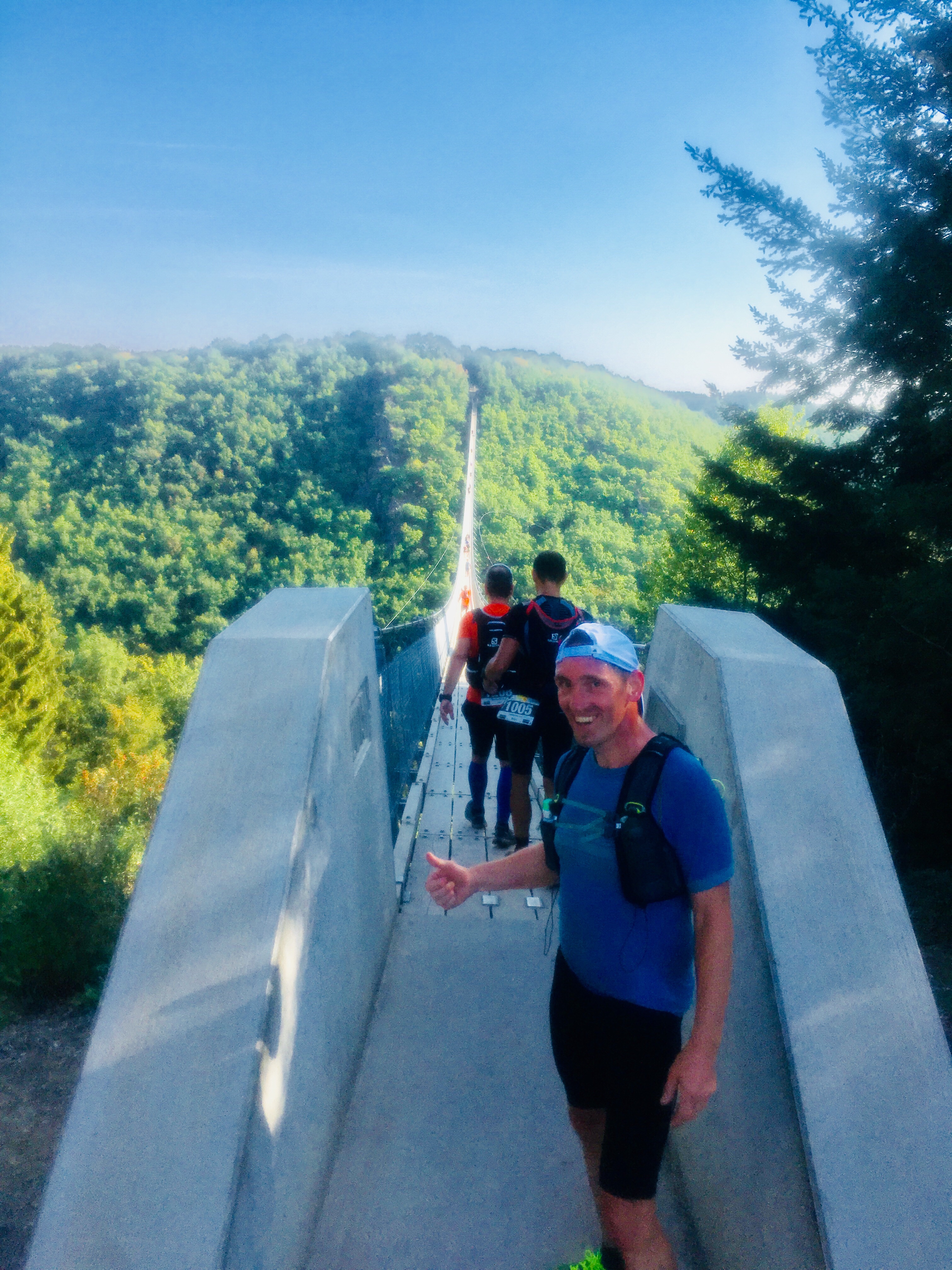 Nicht alle sind schwindelfrei, Gott sei Dank – ich hier schon. 100 m über dem Grund, zur Mitte hin schwankend, zieht sich Deutschlands schönste Hängebrücke 350 m über die Geierlay bei Mörsdorf.