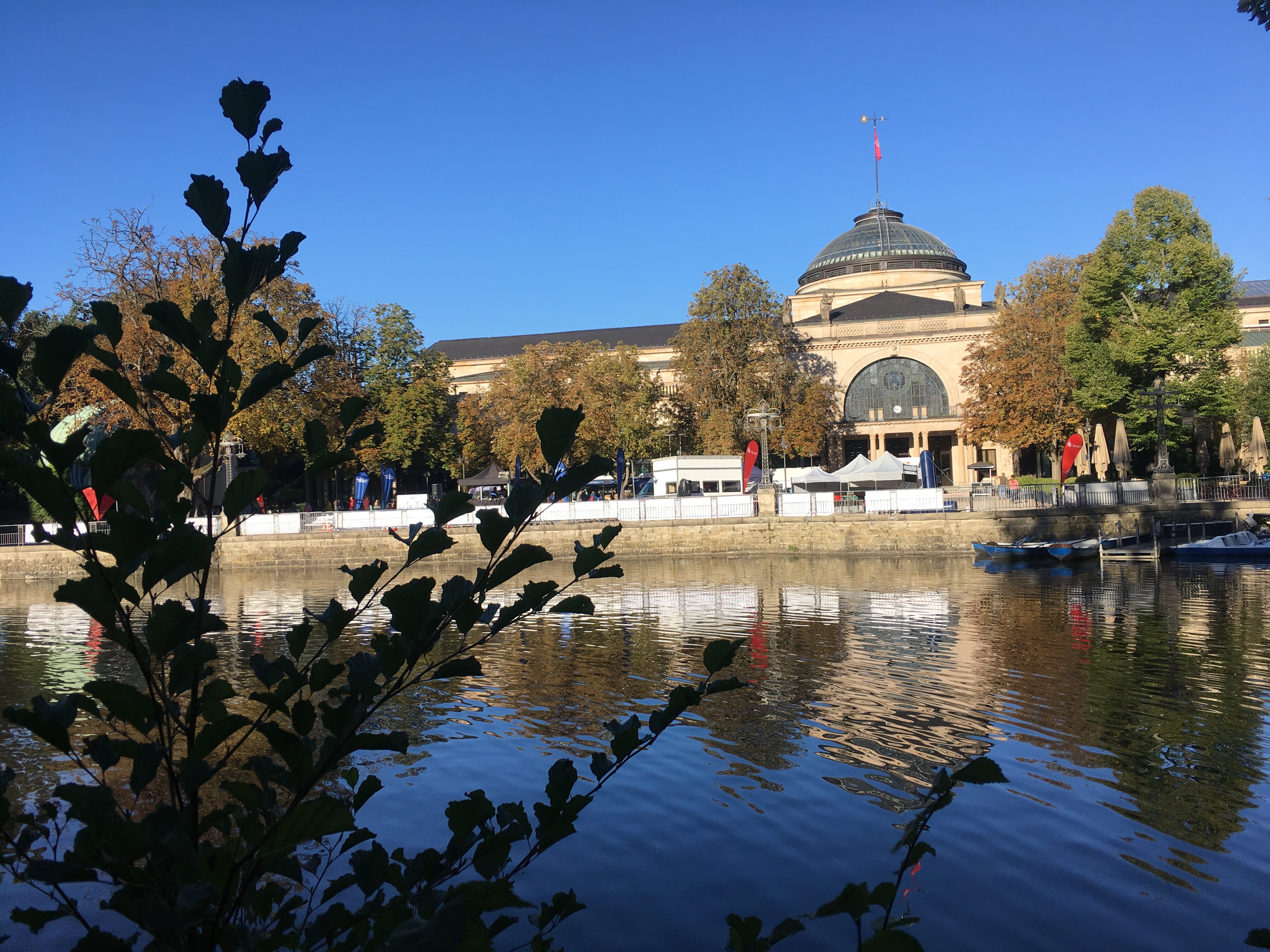 Das Casino Wiesbaden dient uns als WC, was dann den lustigen Anblick von aktiven Läufern gemischt mit leergezockten Spielern bietet. Im Moment ist auch hier noch alles still.