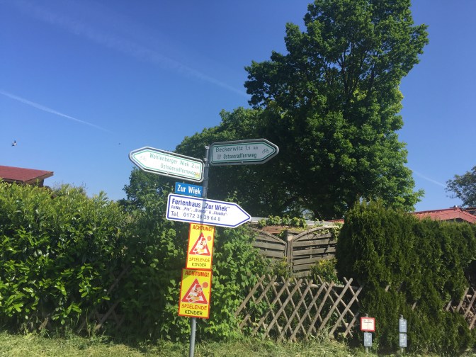 Ich mache mich bald auf, um diese Hammeretappe über den Tag zu verteilen. Die Wege sind besser als in Vorpommern, die Schilder werden zahlreicher und ausführlicher. Das ist so ein Effekt: Je dichter die Landshauptstadt, desto besser die Straßen – und eben auch die Radwege.