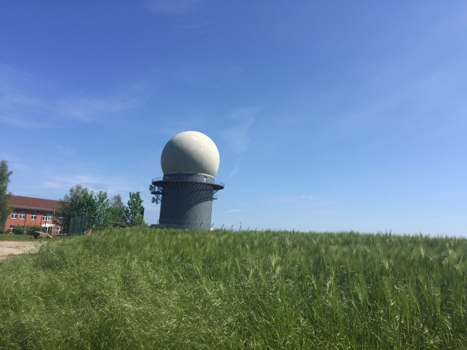 In Elmenhorst – ein Dorf weiter sehe ich einen kugelförmigen Turm, es ist wohl eine Antennenanlage der Luftwaffe. Die Leute nennen ihn Lolli. Paßt ja auch.