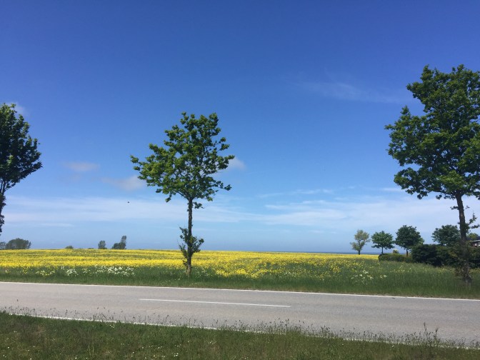 Das Meer ist das immer in Sichtweite, wenn man nicht die großen Straßen fährt. Sehr schön so blau und gelb.