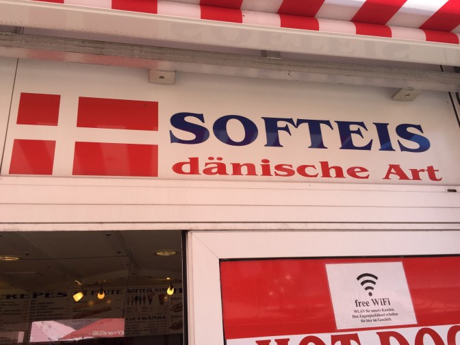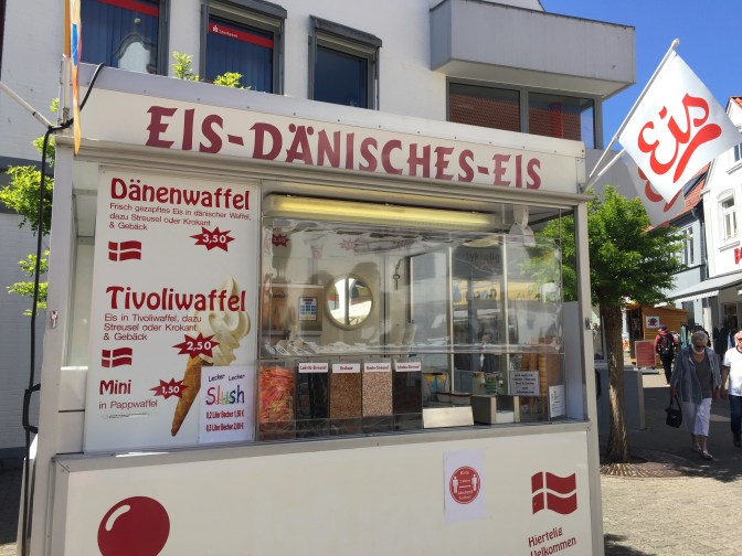 Das Eis noch in der Hand passiere ich die Buchhandlung Gosch. Auch sie bestellen mein Buch. Das ist schon super, so eine Tour zu den Händlern zum Saisonauftakt.