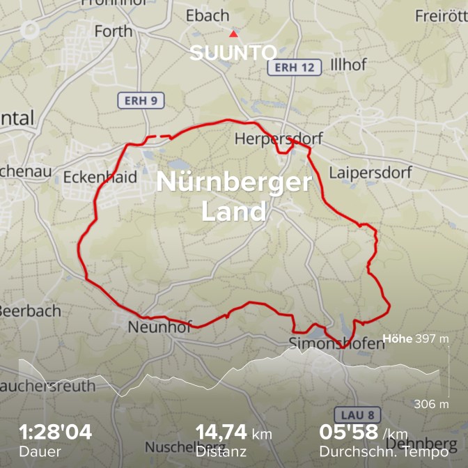Achja- Laufen war ich auch im Nürnberger Land. Drückende Hitze hin oder her – das Bier von der Gartenparty mußte raus. Es bleibt ein gutes Gefühl, das Angenehme mit dem Nützlichen zu verbinden.