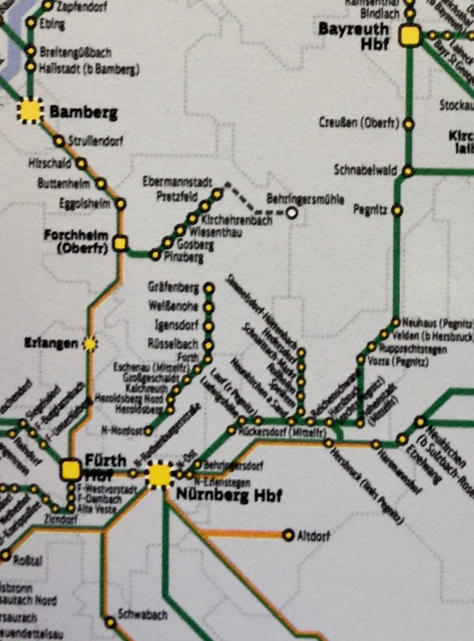 Über Land geht es mit S-Bahn und Regionalzügen des VGN