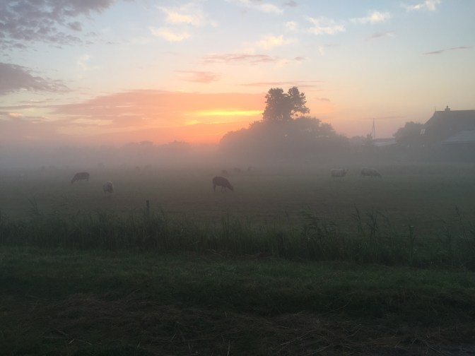 Der Morgen war Gottseidank um 6 Uhr angebrochen, denn trotz übertags 30 Grad war es in der Nacht kalt. Der Nebel stieg über den Schäfchen auf und mit den ersten Tritten in die Pedale Richtung Fähre war schon alles wieder gut.