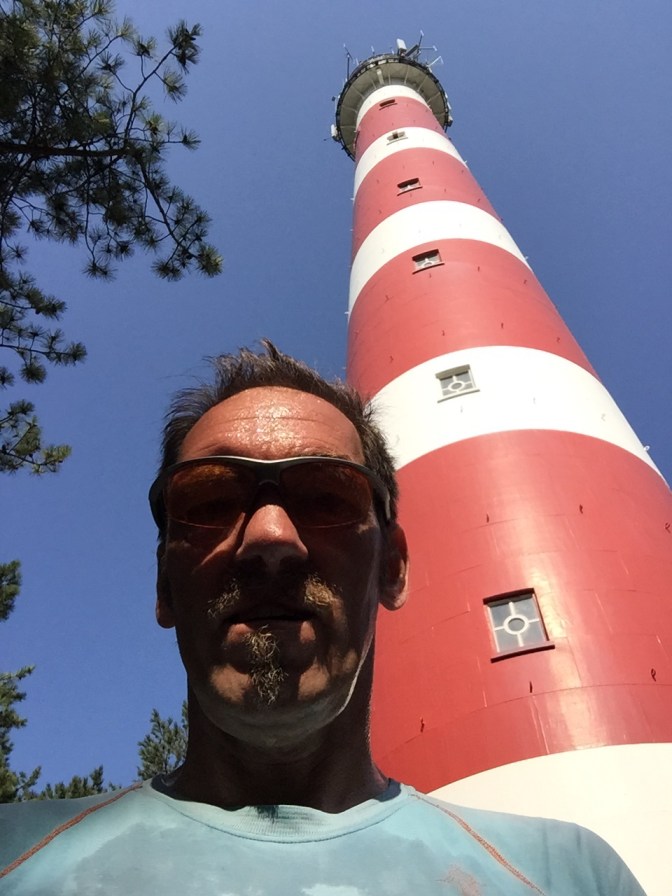 Auf Terschelling mußten wir im Freien übernachten, hatten nicht die richtige Hotelbuchung gemacht und es gab keinen einzigen Schlafplatz – keine Besenkammer – nichts. Das ist gar nicht so einfach. Es ist zum einen nicht erlaubt aber das war nicht das größte Problem. Wir hatten nur ein paar Shirts dabei, nur ein Microfasertuch für den Notfall, ich noch eine lange Hose. Wozu doch so eine Maske gut sein kann: sie hielt mich teils von den erbarmungslosen Mücken ab.
