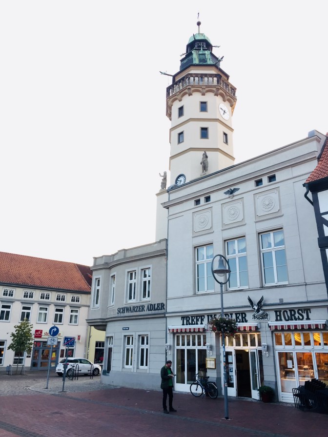 So hätte ich mir die Rückkehr in meine Geburtsstadt vorgestellt, wenn ich damals gewußt hätte, daß ich mal ein Buch schreiben würde. Immer, wenn ich mal hier bin, finde ich es noch ein bischen kleiner, aber immer auch schön. Zum Beispiel den Rathausturm (das dazu gehörige Rathaus ist irgendwann mal abgebrannt).