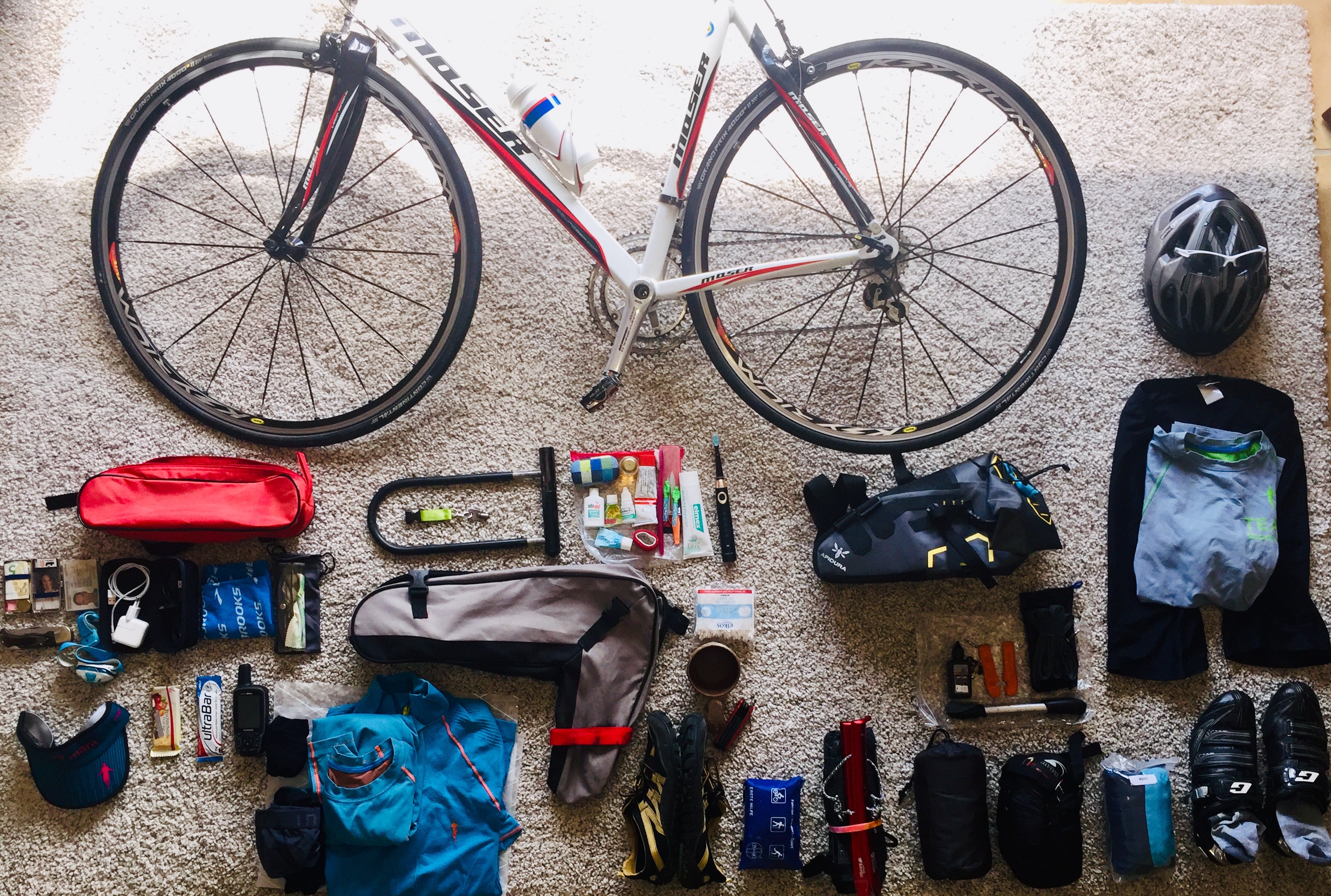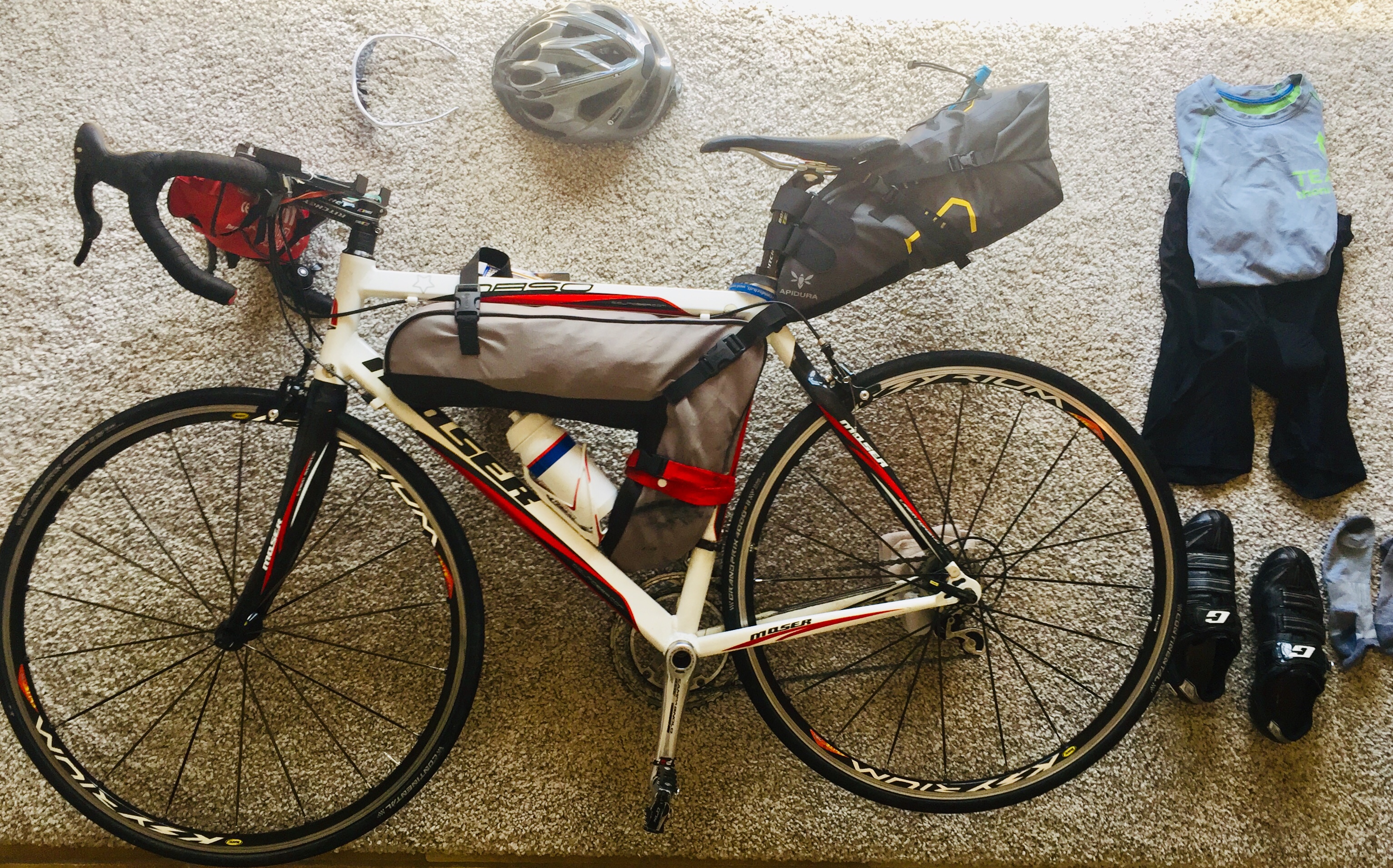 Und ich muß mich mit der Ausrüstung beschäftigen. Weil ich auch eine Plane, Isomatte und Schlafsack mitnehmen will, kaufe ich mir eine „Arschrakete“ , eine Satteltasche. Habe mich für Apidura 16 Liter entschieden, ziemlich teuer aber leicht, wasserdicht und wohl sehr gut.