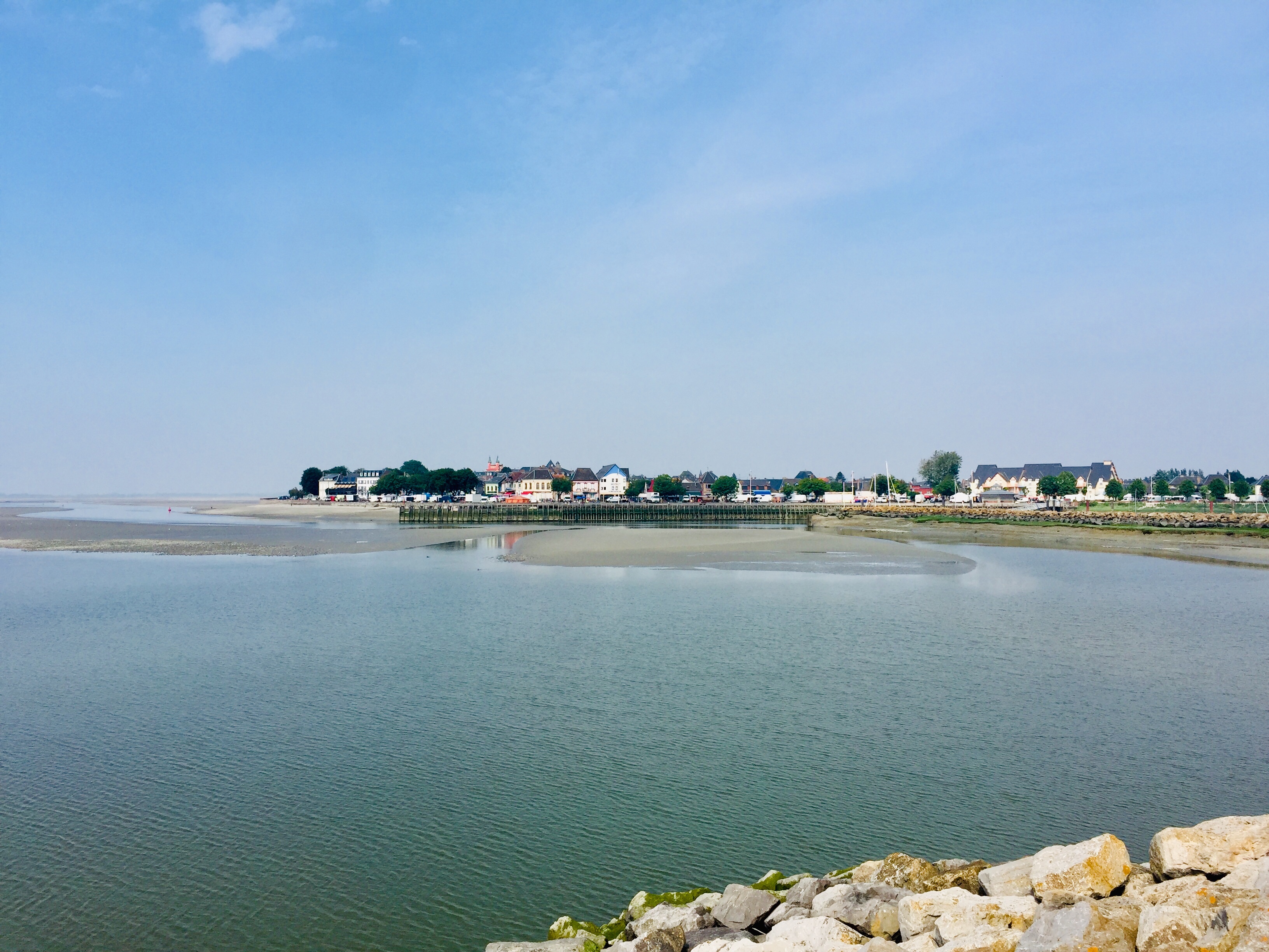 Mein Hotel „3 Jeans“ in Le Crotoy hatte sich gelohnt. Ich konnte meine Radhose und -Shirt auswaschen und in die Abendsonne hängen. Sie habe ein Restaurant und ich mußte nicht nochmal los. Auch das Frühstück ließ sich sehen. So hatte ich die Bucht Baie de Somme vor mir, die ich umrunden mußte, um dann wieder am Meer nach Dieppe zu kommen.