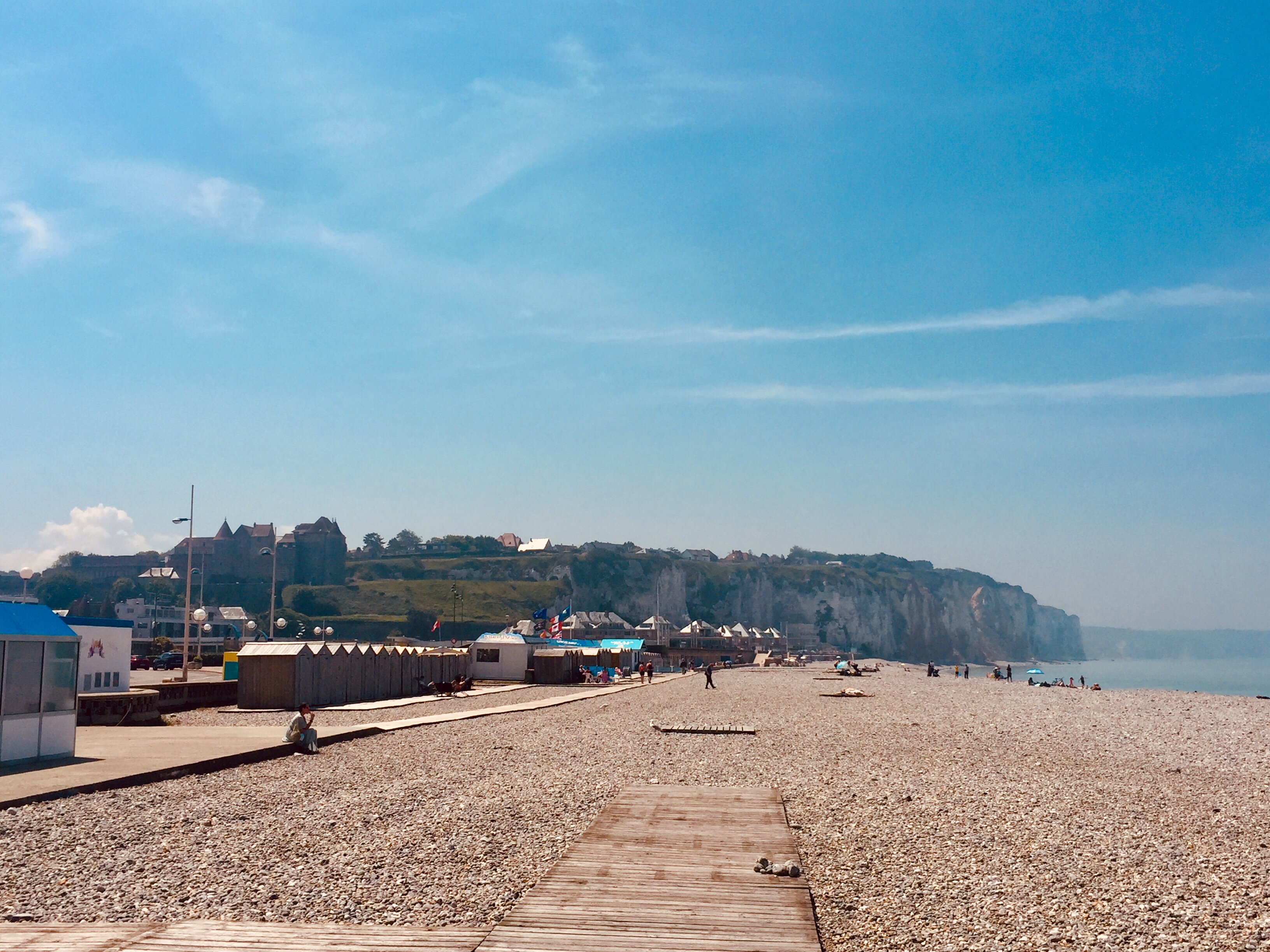 Nach Dieppe ging es wieder steil runter und dann bot sich ein nicht zu schöner Urlaubsort mit einem Karussell, einem Hafen, Yachthafen, einer uralten Festung auf dem Kalksockel und den Kalkfelsen selbst. Der war schon beeindruckend.