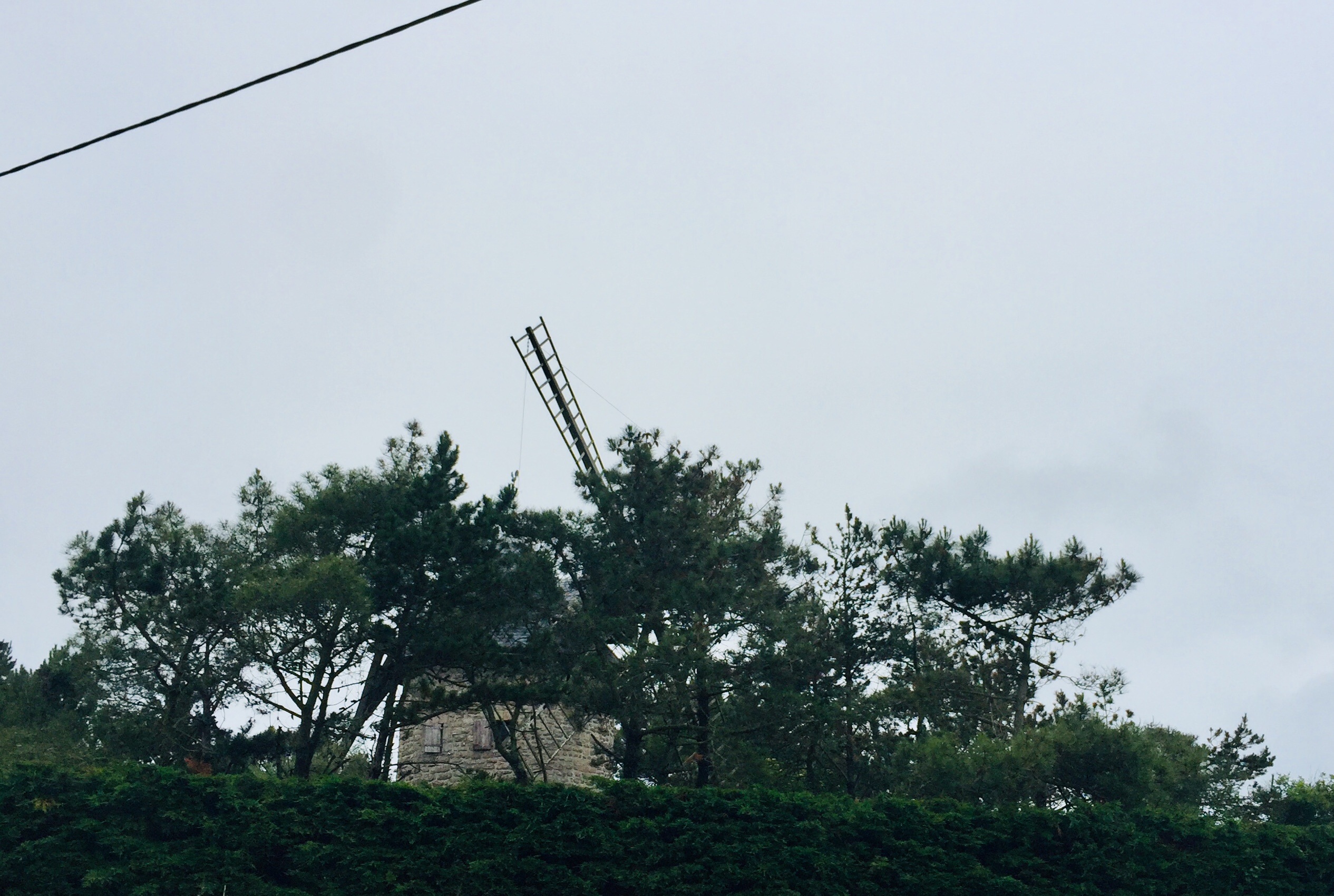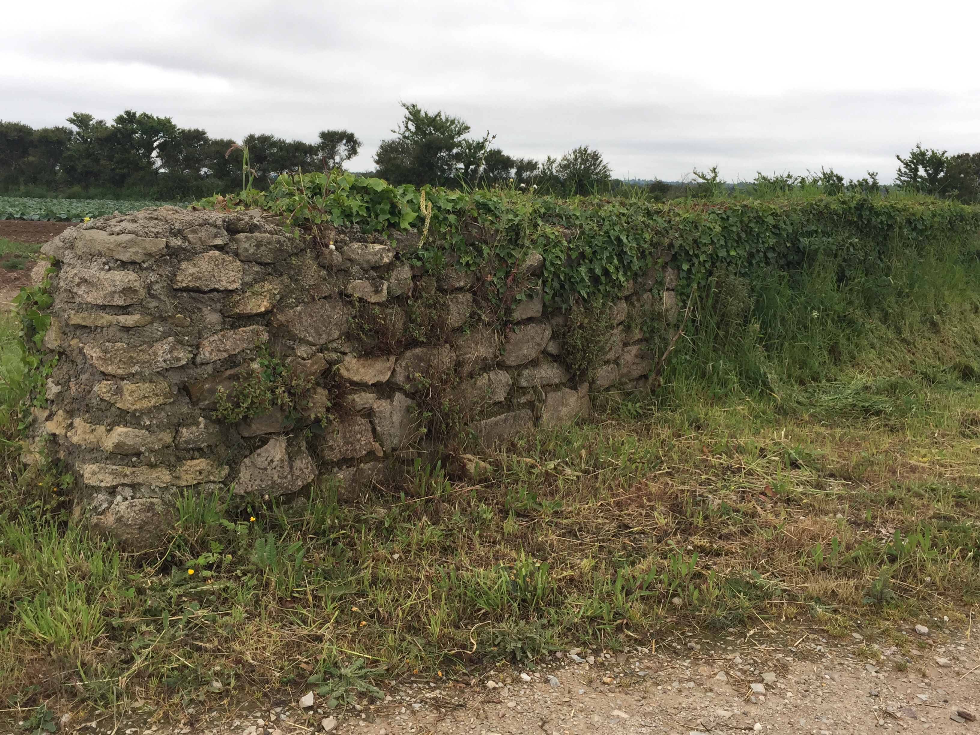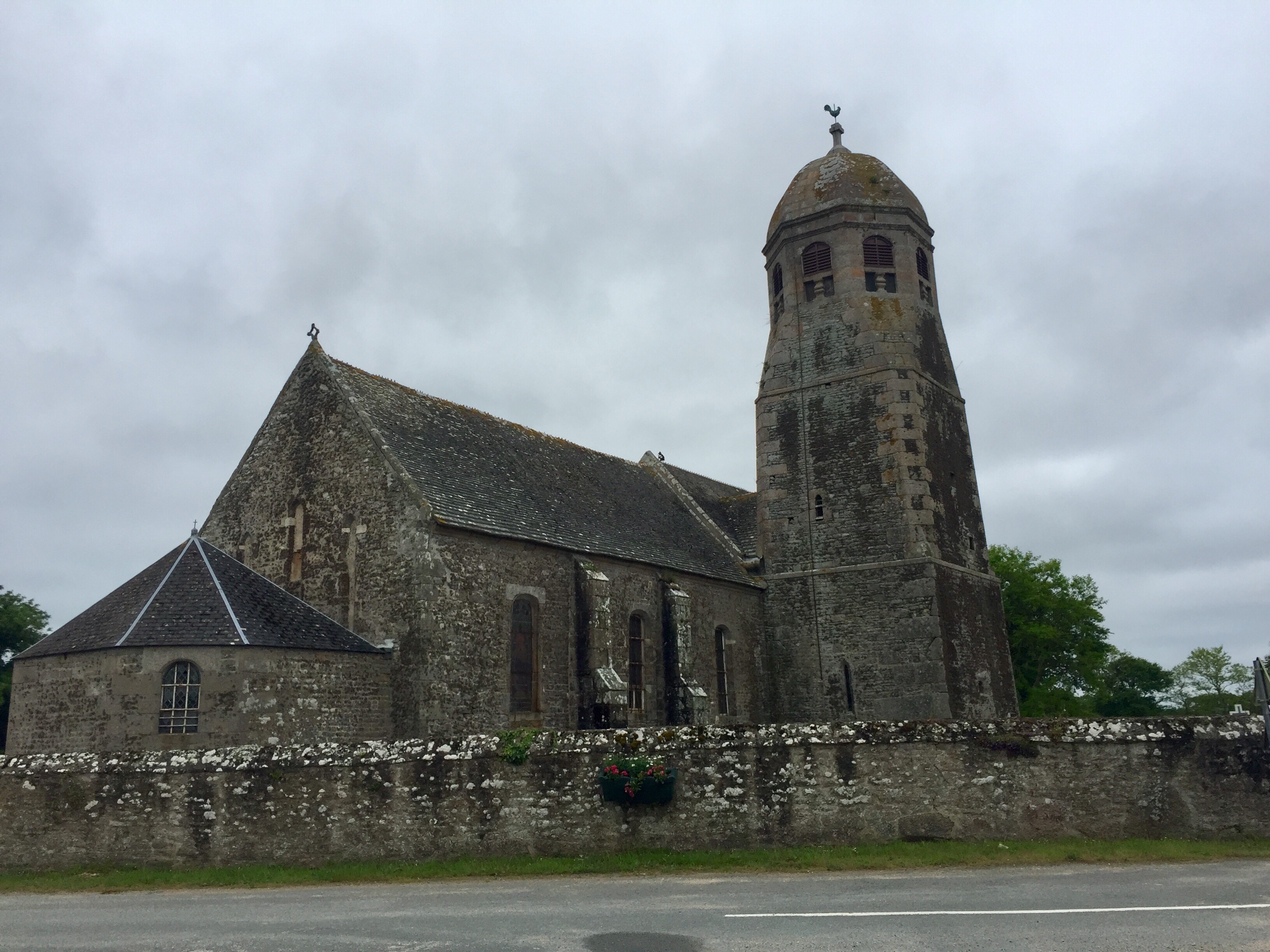 Um Akku zu sparen, fuhr ich nun mit einer Offline-Karte im Handy. Das Germin, das ich auch dabei hatte, ist so nicht zu gebrauchen. Ich hatte mir je viel Mühe gegeben, die Routen vorher auszusuchen, um einen Vorschlag zu haben. Die Routen ließen sich aber, anders als früher, weder auf meine Sportuhr, auf mein altes eigenes Garmin, noch auf ein geliehenes Garmin übertragen. Wozu dann das ganze Zeug? In dieser Offline-App waren sie aber drin. Na jedenfalls ging der Huddel weiter, immer wenn ich mal eine Minute das Display ausmachte, hatte ich mich prompt verfahren, vor allem, wenn ich gerade eine Abfahrt runter war. Natürlich gab es dann auch keine Querstraße oder so. Ich nahm Umwege in Kauf, hielt andauernd an um mich zu vergewissern, wurde gestreßt von den Autofahrern, konnte mich wegen eines straffen Gegenwindes nicht mehr zwischendurch aufsetzen, mußte mein Handy dauernd zwischendurch verstauen, weil es nun regnete… Kurz gesagt, ich biß mich beinahe fest und kam in den Kampfmodus. Das kenne ich von mir, aber schön ist das nicht. Es ist auch das Gegenteil von Ausdauer. Denn den Kampfmodus machst Du nicht lange. So ging das bis Pieux, ein Ort, an den ich eigentlich gar nicht wollte.