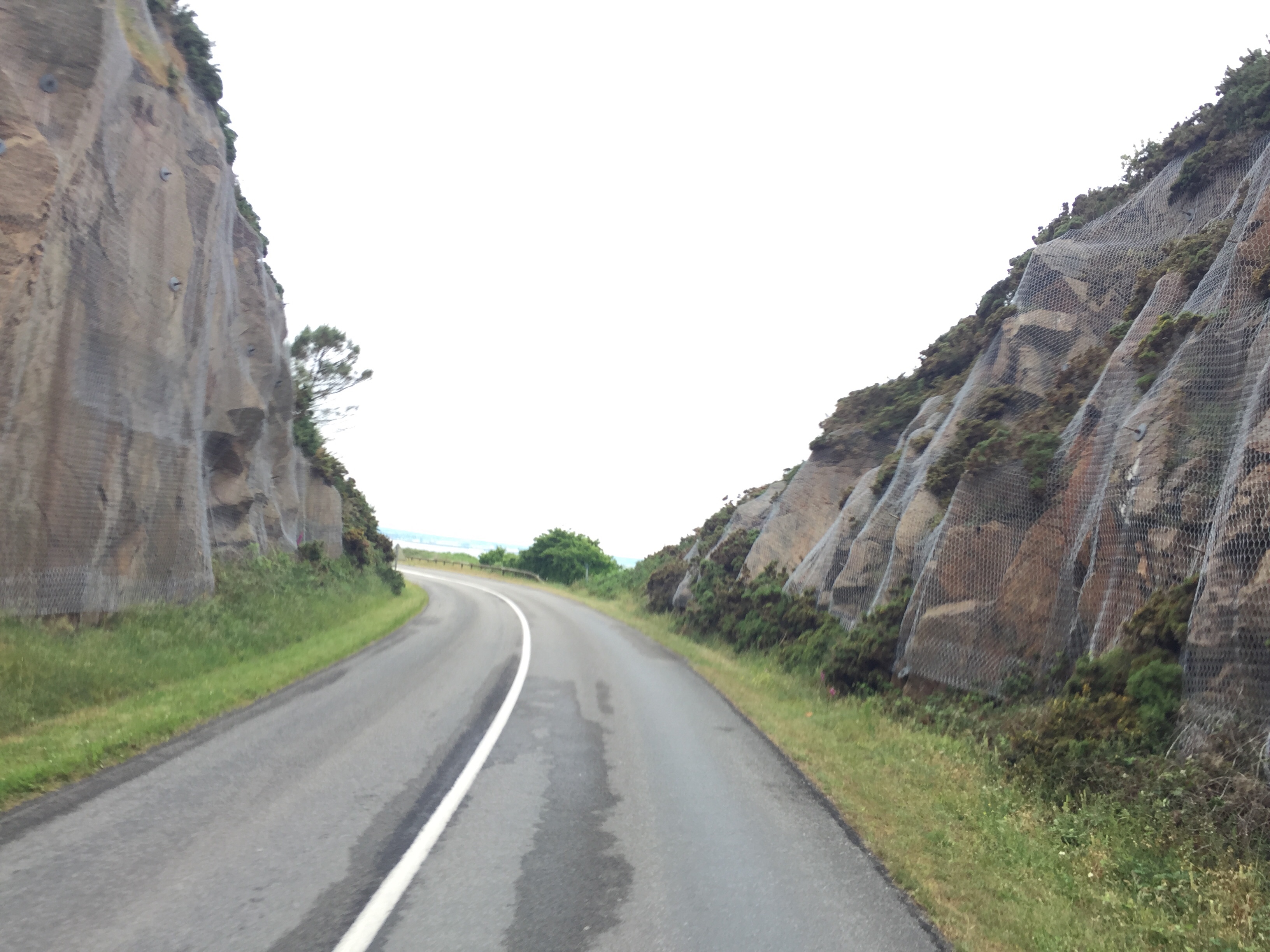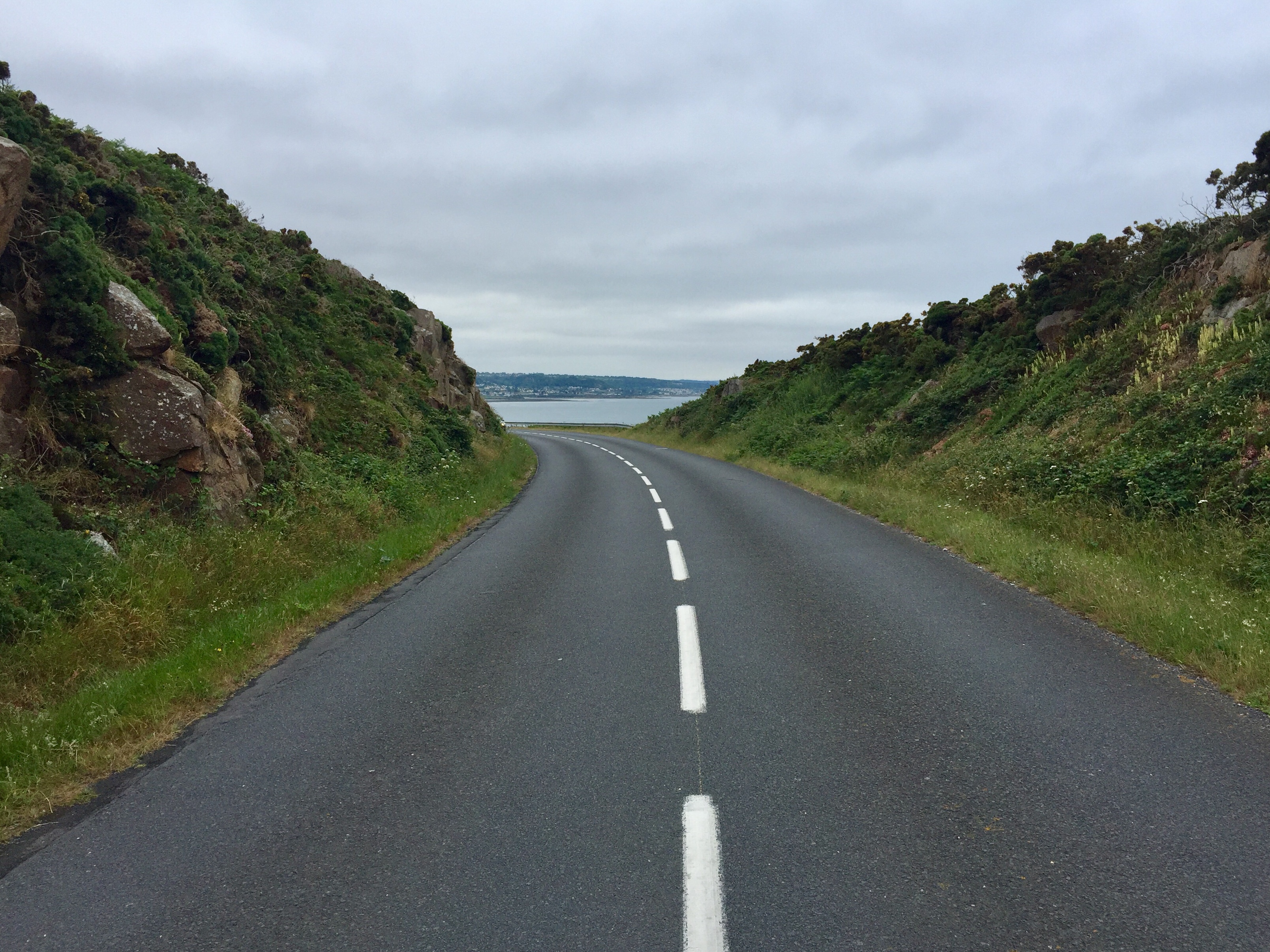 Die Straße ging auf und ab und es war kaum Wind zu spüren, weil es links und rechts Hecken, Mauern oder Felsen gab.