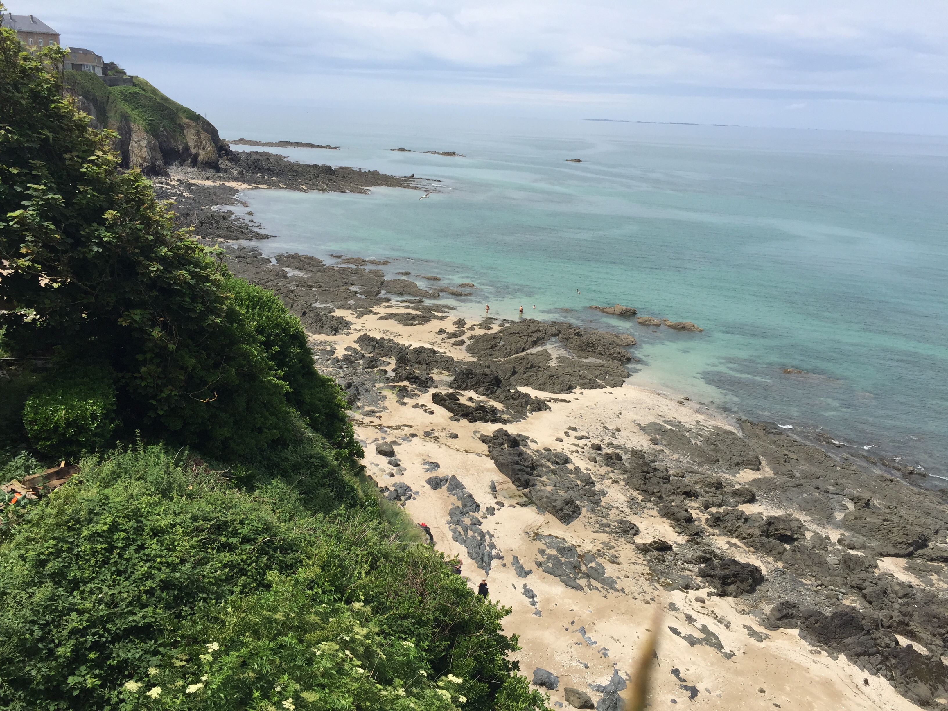 Von hier oben hat man grandiose Ausblicke auf die nun wieder felsige Granitküste.