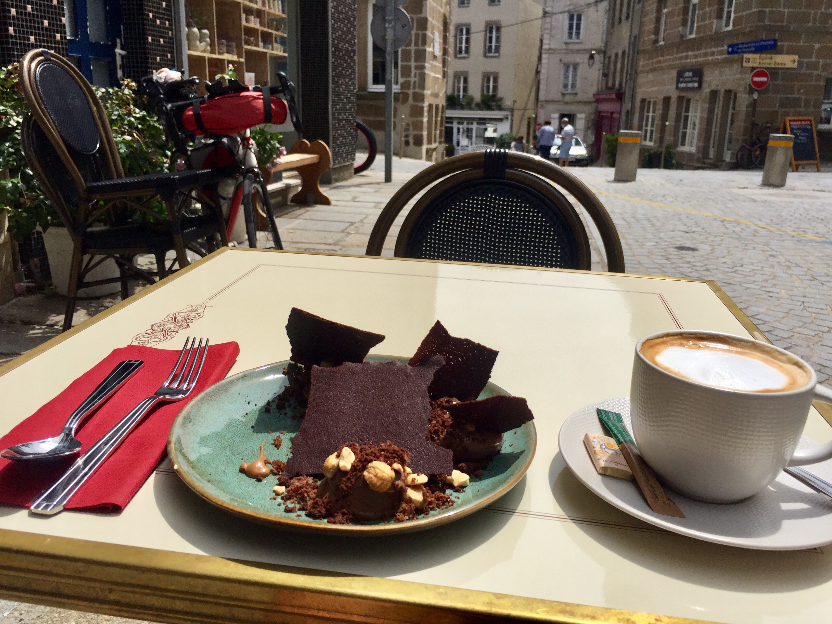 Das Frühstück war reichlich bei Bernadette Vassilon. Eine super Entscheidung gestern, solange zu suchen, bis ich dieses Gästezimmer fand (chambre d‘Hotes).