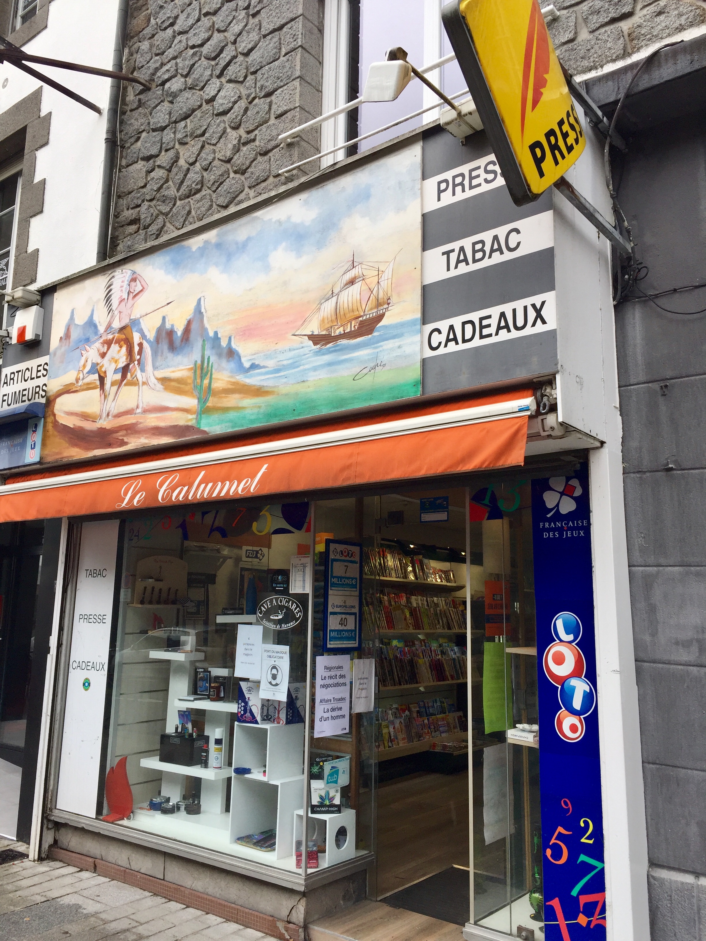 Ich frönte meinem Hobby: einen Aukleber für den Koffer kaufen. Das war wenig erfolgreich, in der Tourismuszentrale wußten sie nicht mal, wie das Wappen der Stadt aussieht. Einen allerletzten Versuch machte ich in diesem Press-Tabac-Lottoladen, dabei hatte der nicht mal Postkarten. Erst schüttelte er den Kopf, während seine Frau in einer Schublade wühlte und einen alten Packen fand. Und dann strahlte ich: „Wissen Sie, daß sie die einzigen derartigen Aufkleber der ganzen Stadt haben?“