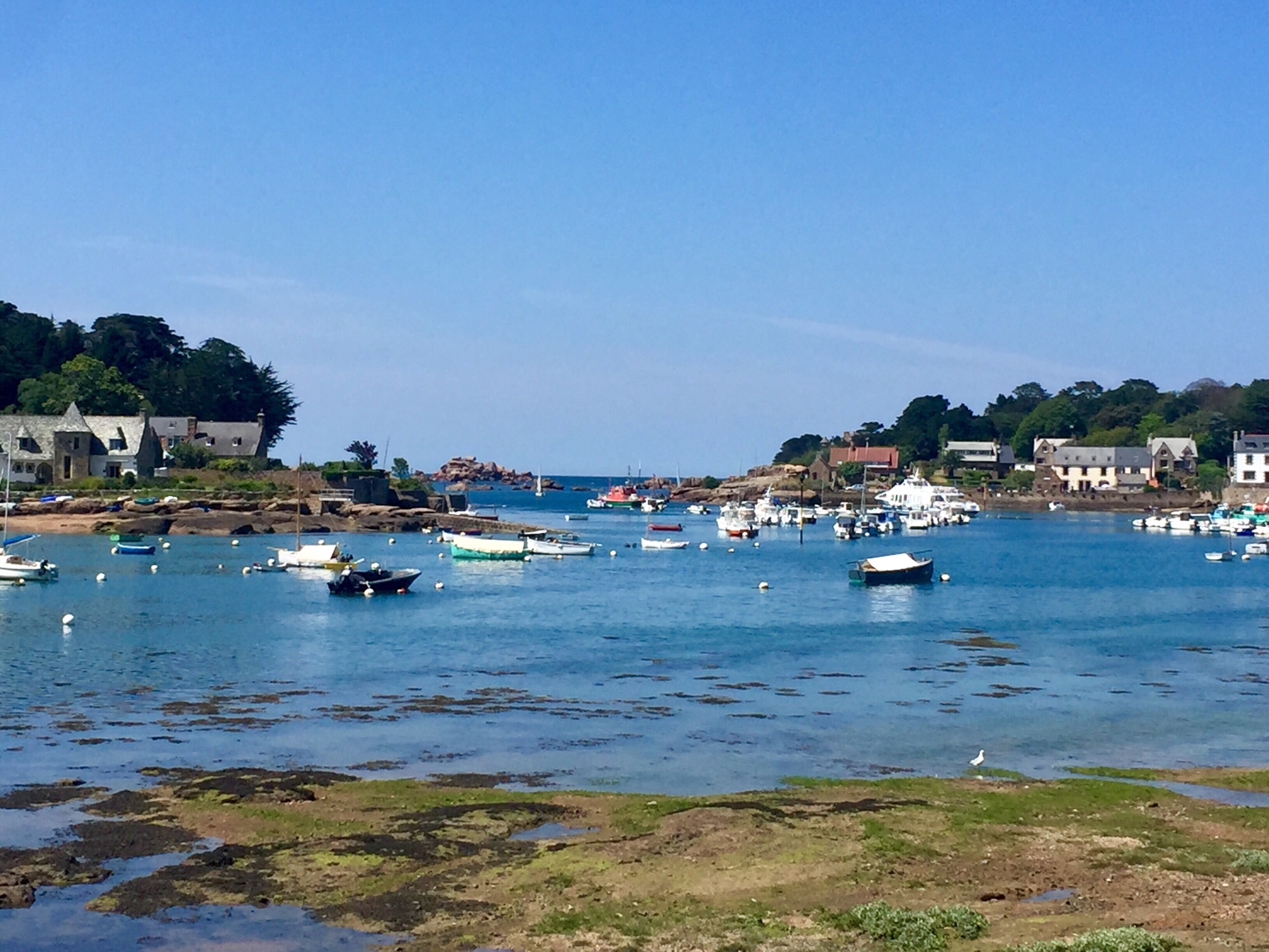 Ab Perros – Guerec werden die Felsen immer größer und viele kleine Inseln aus diesem Rosa Stein kommen bei Ebbe besonders gut zur Geltung.