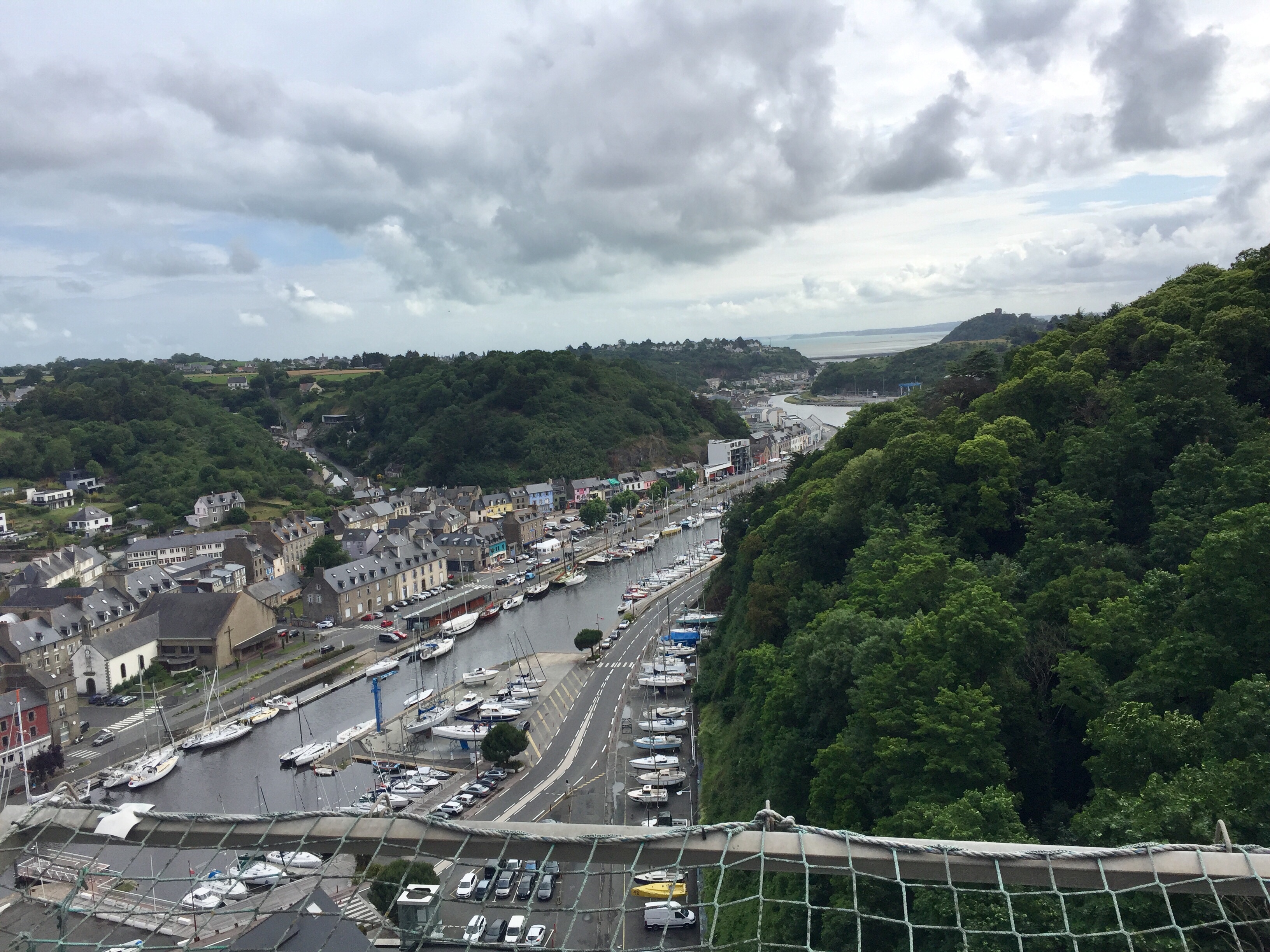 Heute war der schönste Tag der Tour bisher. Einfach unglaublich und man muß es selbst gesehen haben. Gut, daß ich gestern soviel zu Fuß unterwegs war und die Brücken auskundschaftete. Heute fuhr ich über die Viadukte aus der Stadt und sah dann doch noch den tief unten liegenden Hafen von Saint Brieuc.