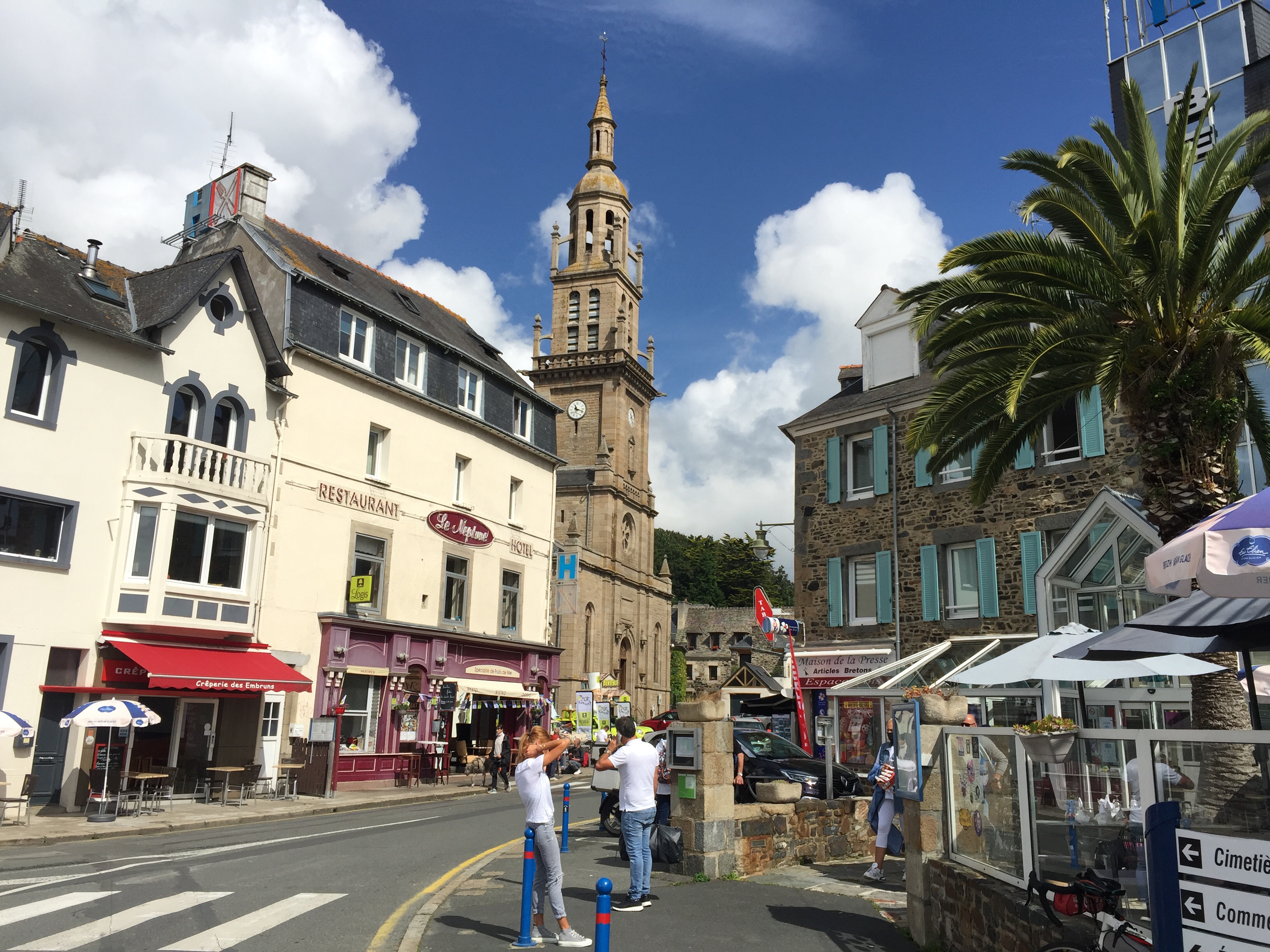 Sie bemühen sich wirklich mehr als alle anderen um die Radler, auch wenn mit die Stadt ansonsten nicht so wahnsinnig attraktiv vorkam. Direkt im ersten Küstenort Binic ist das anders: ein Traum mit Schiffchen, kleiner Hubbrücke, Cafés, Kirche.