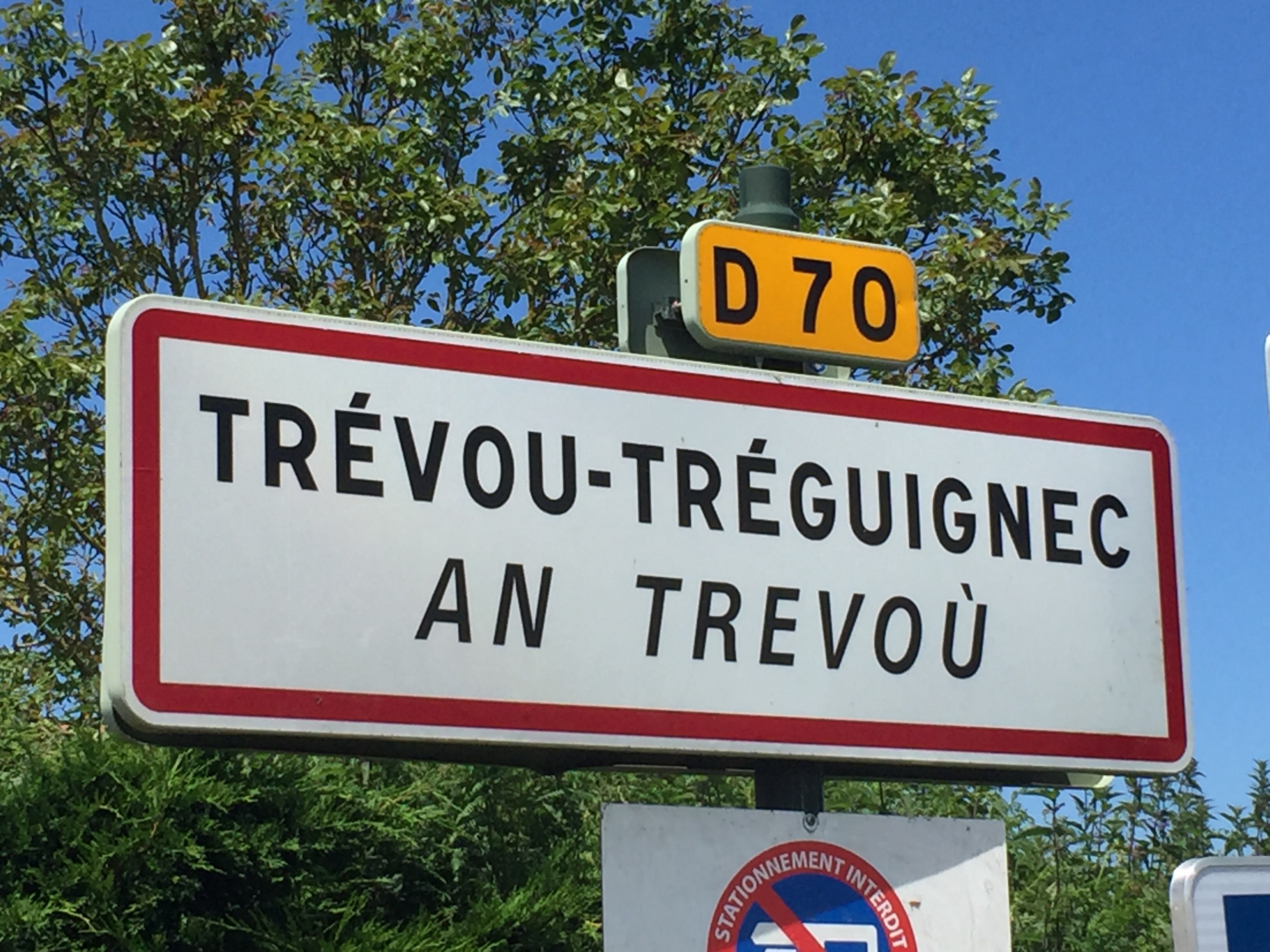 Ich fahre heute zufällig große Teile der zweiten Etappe der Tour de France in Gegenrichtung ab. Brest – Briac. Ich erkenne sie an diesen Schildern.